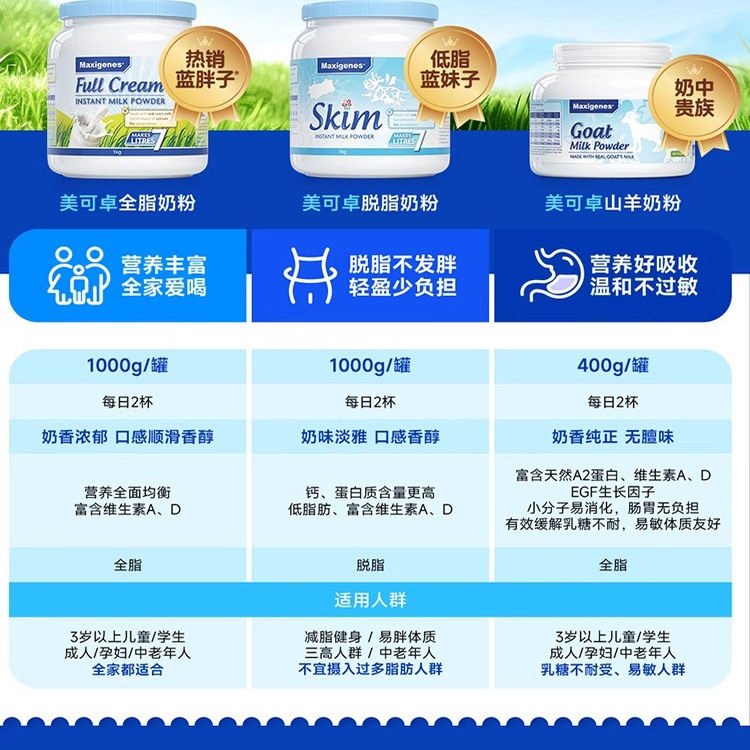Maxigenes美可卓蓝胖子纯山羊奶粉高钙白胖子成人中老年进口正品
