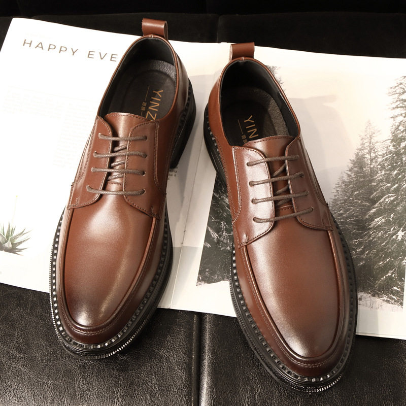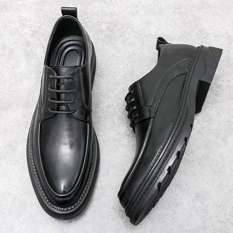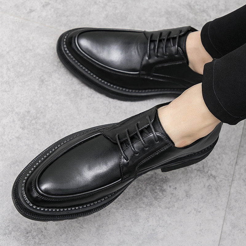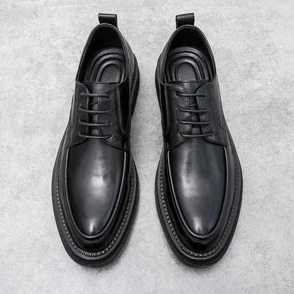 春秋季商务西装皮鞋男英伦休闲鞋韩版潮流年轻款透气黑色增高男鞋