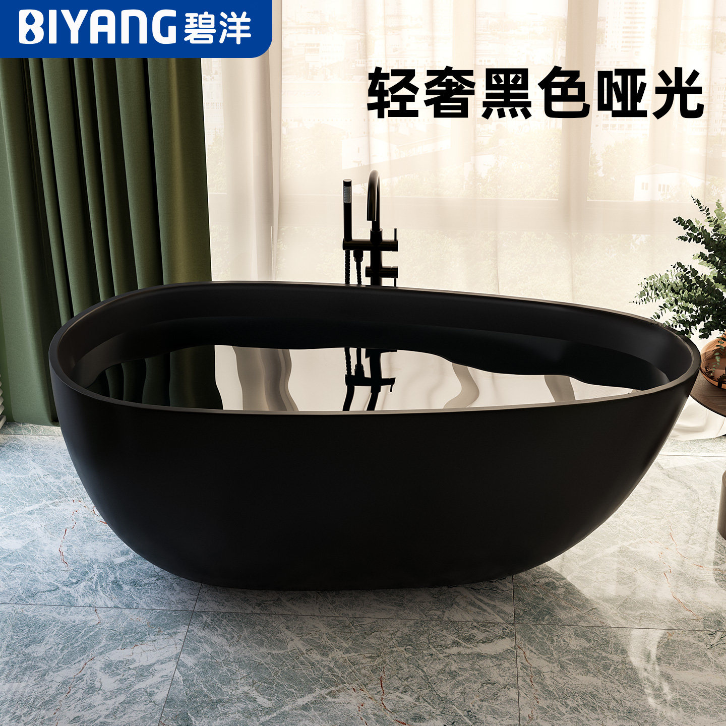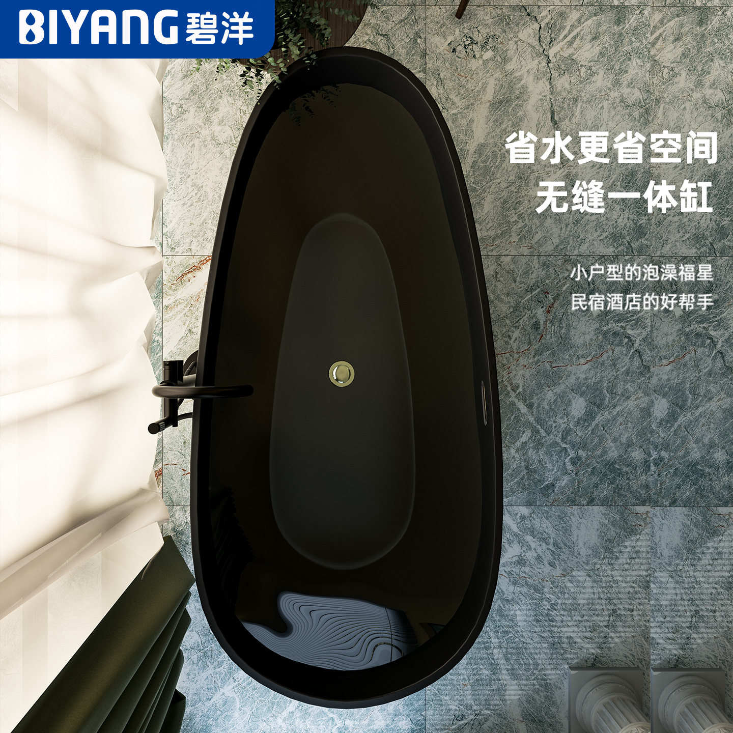 碧洋黑色哑光独立式网红浴缸家用小户型亚克力酒店民宿鹅蛋形浴盆