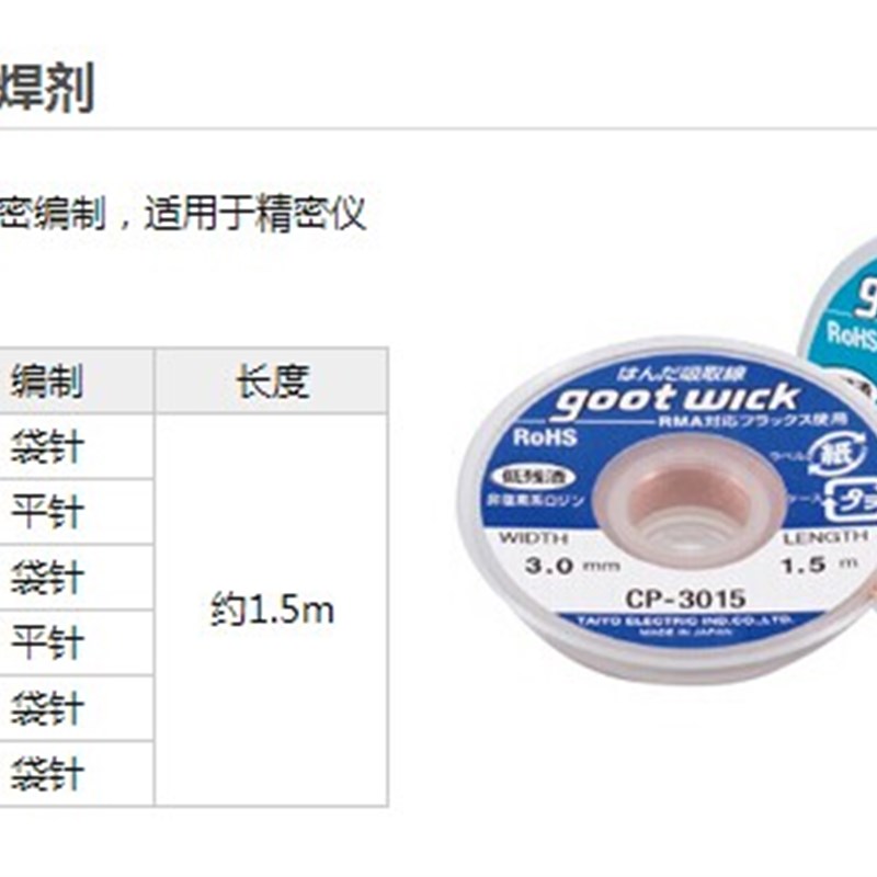 日本goot大洋进口吉欧欧替无残渣吸锡线CP-1515 CP-3015 CP-2015