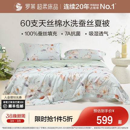 罗莱家纺天丝莱赛尔棉100%蚕丝夏凉被空调被可水洗机洗家用地暖被