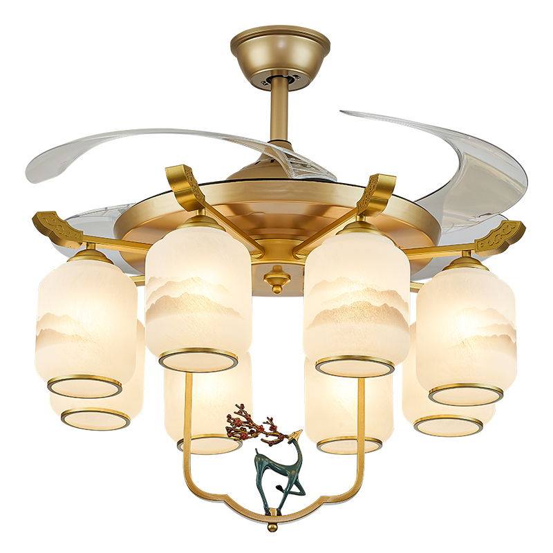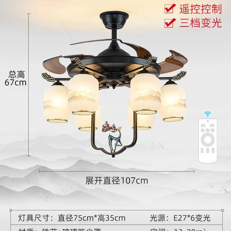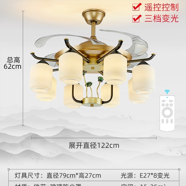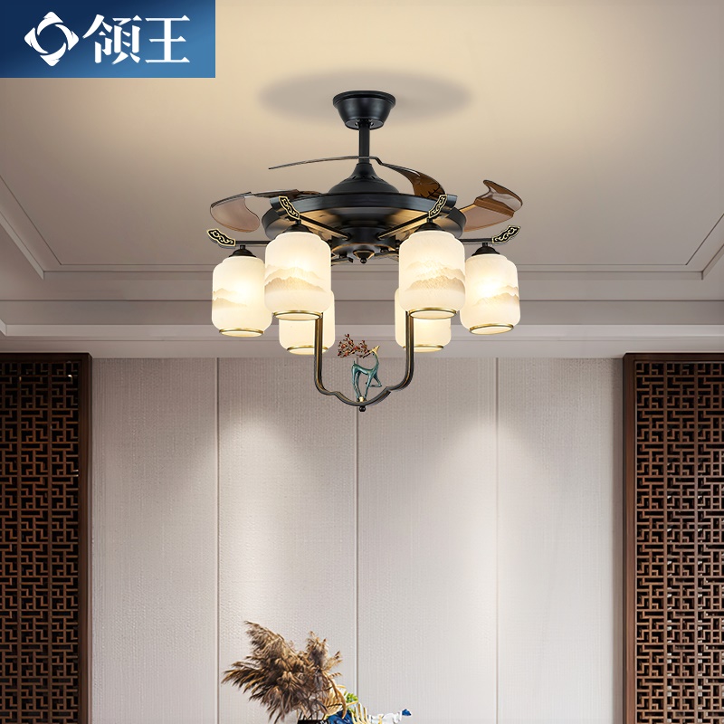 领王客厅大厅风扇灯轻奢餐厅吊扇吊灯具灯隐形新中式带电扇一体的