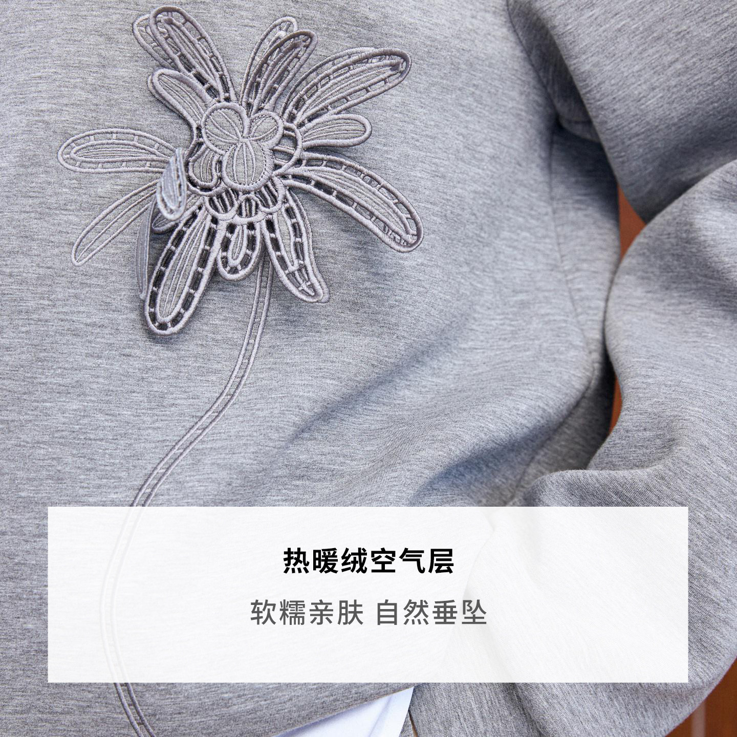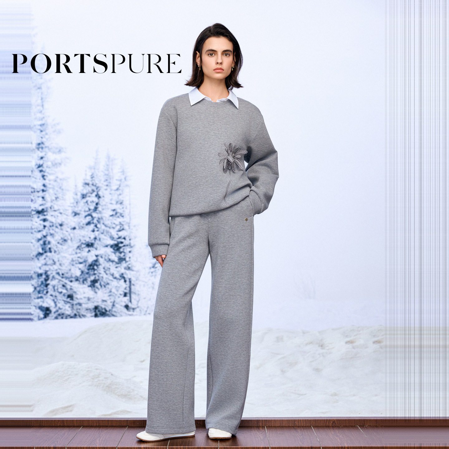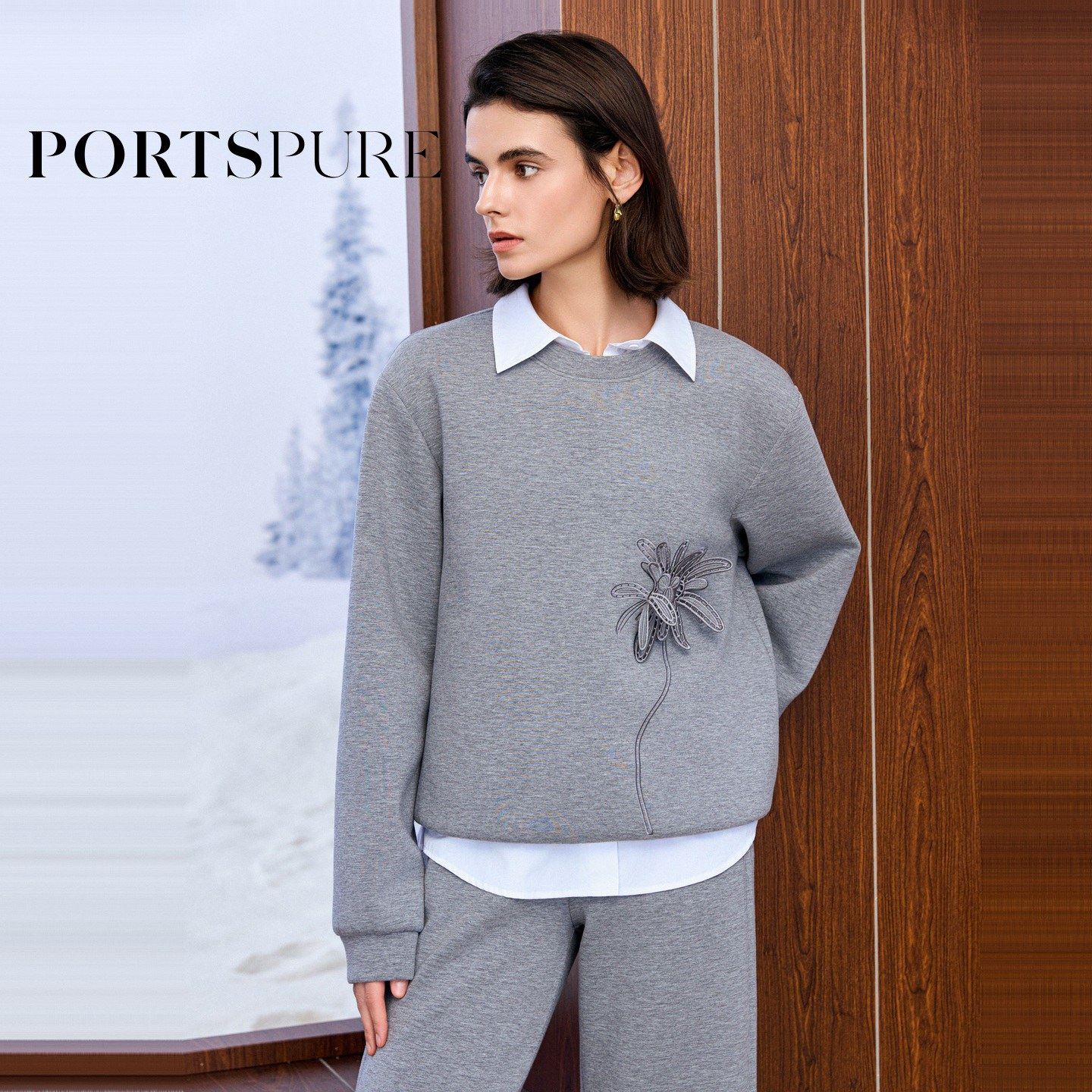 商场同款 宝姿PORTSPURE女装2025秋冬新品随性刺绣立体花卉卫衣
