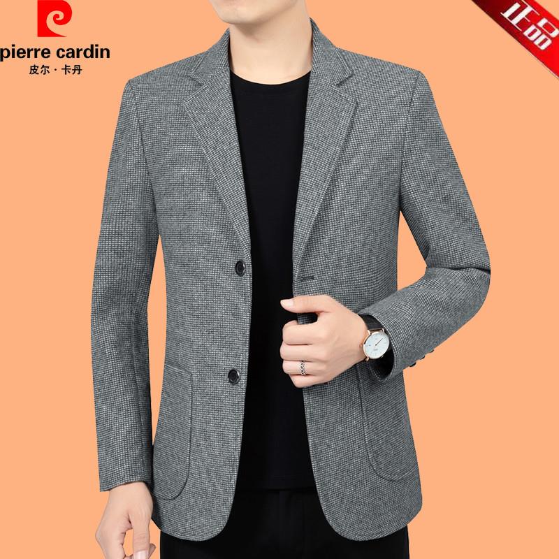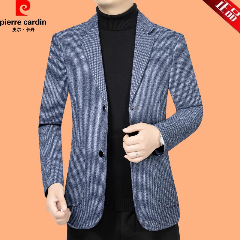 皮尔卡丹正品休闲西装男秋冬新款爸爸装上衣中年男士西服修身外套