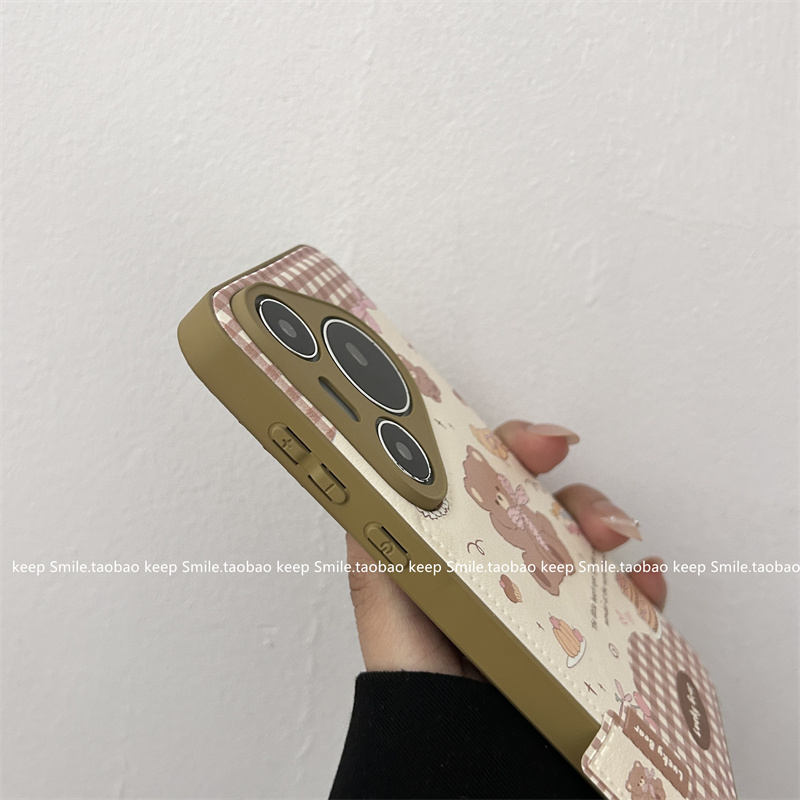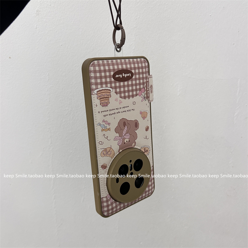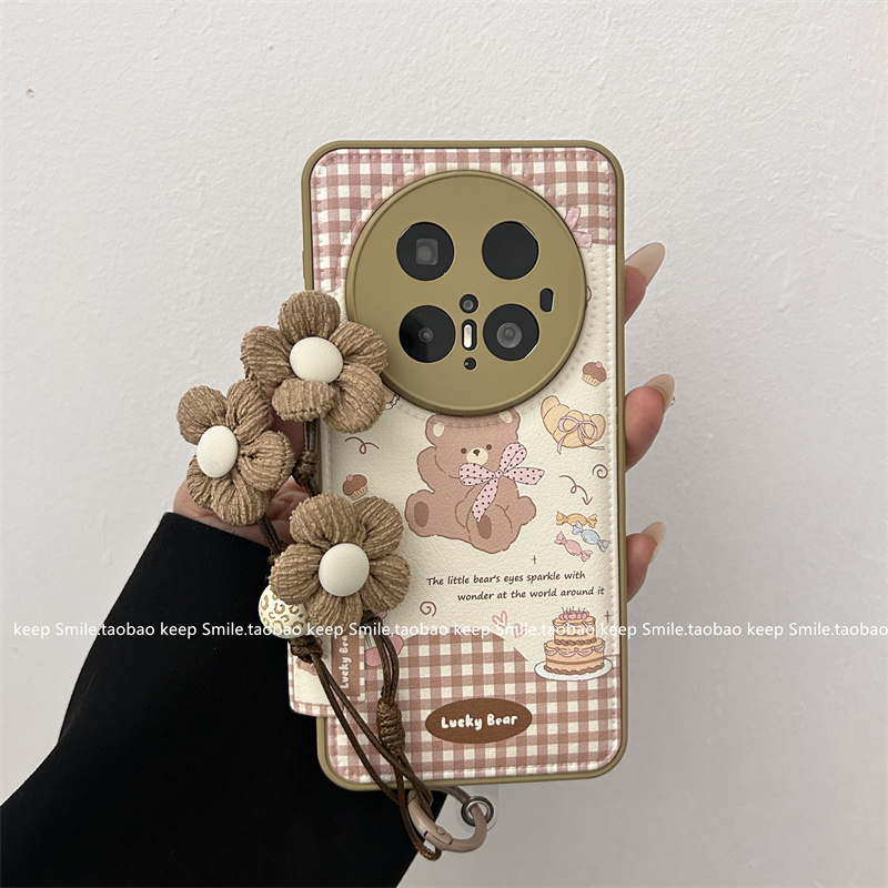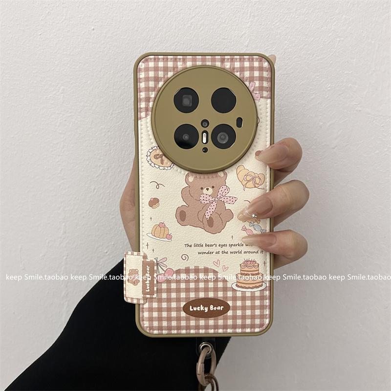 卡通可爱格纹蝴蝶结牛角包小熊适用华为mate70pro+手机壳mate60pro气垫皮纹pura80pro花朵手绳pura70pro全包