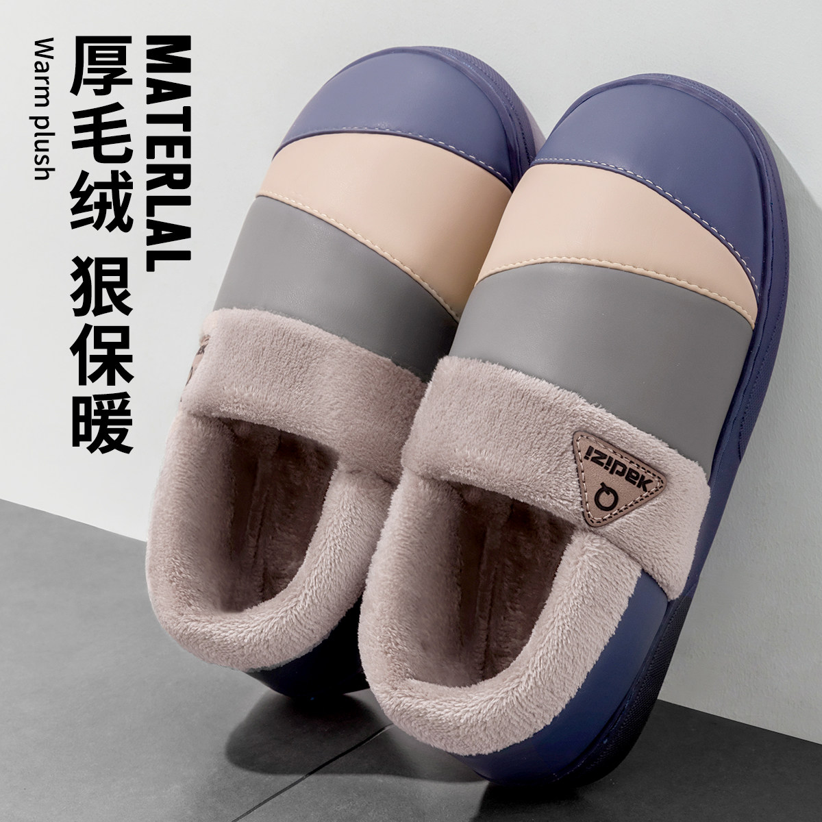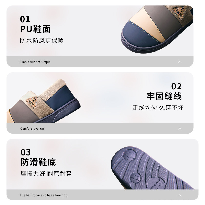 秋冬季防水厚底保暖带后跟棉拖鞋