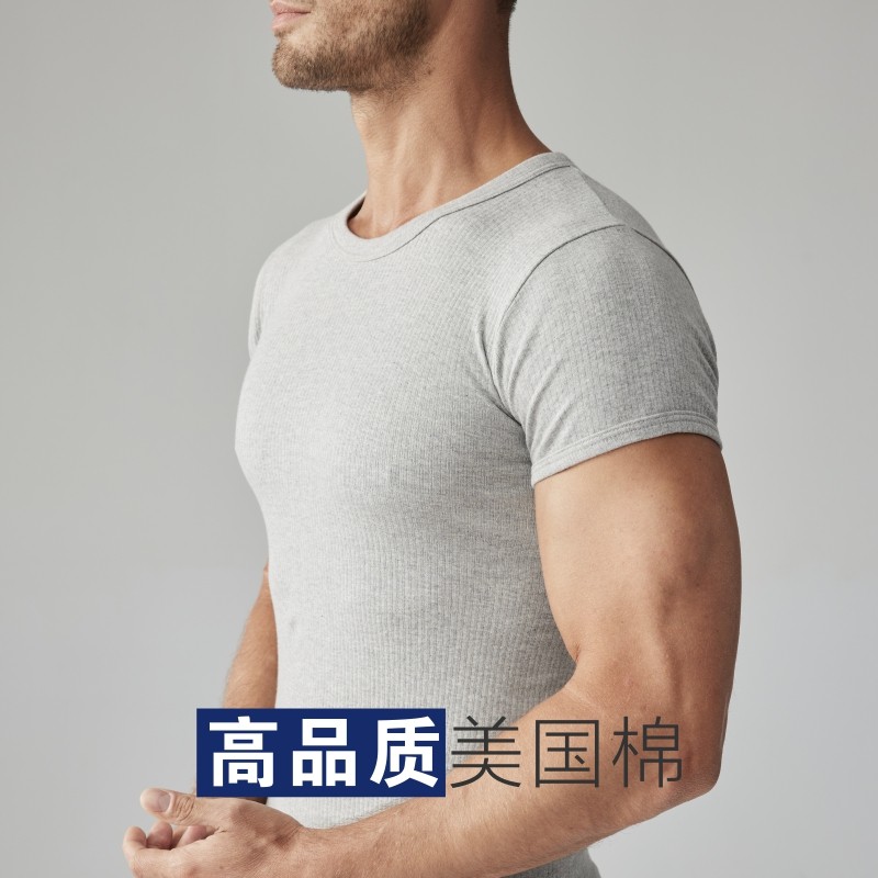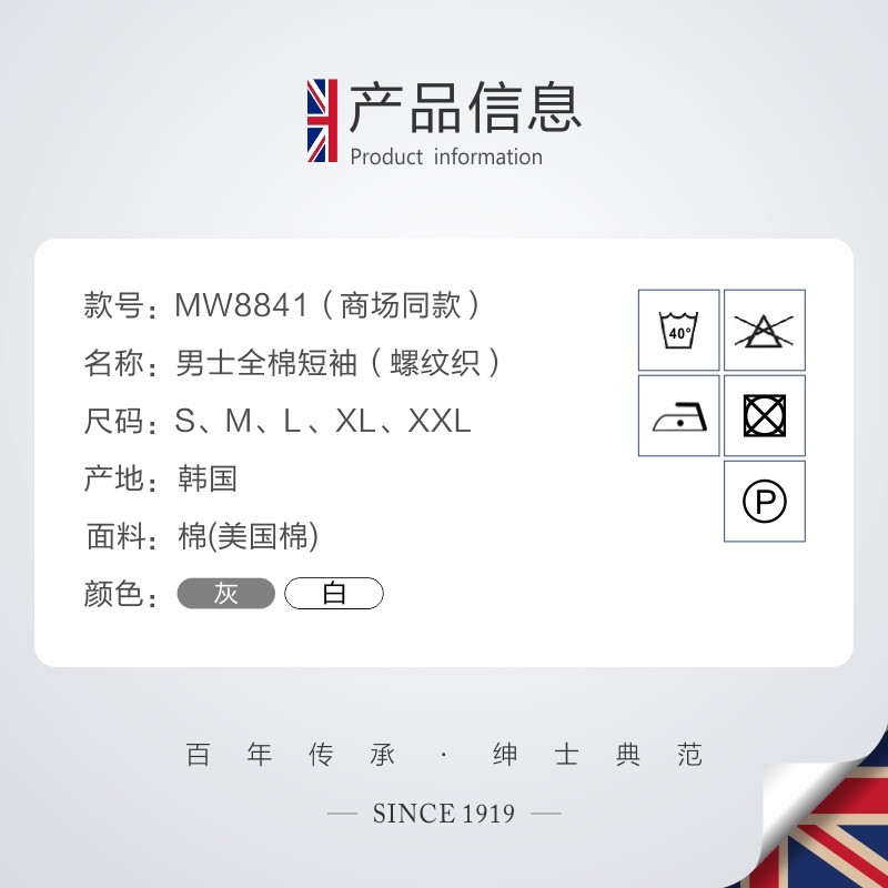 BYFORD/百富夏季新品男士纯棉圆领短袖T恤螺纹打底衫休闲MW8841