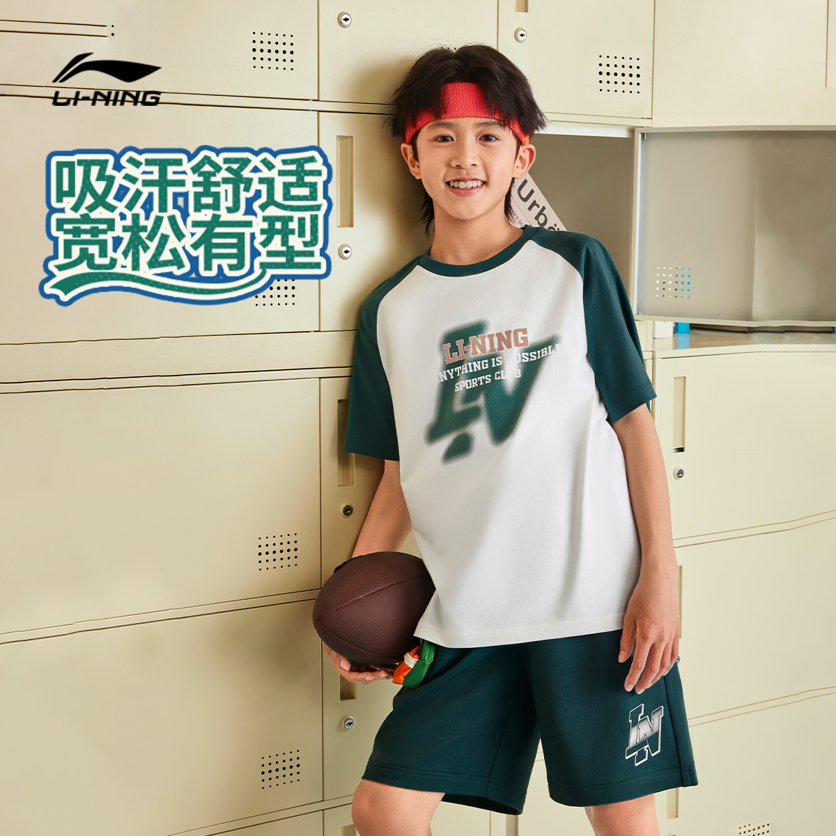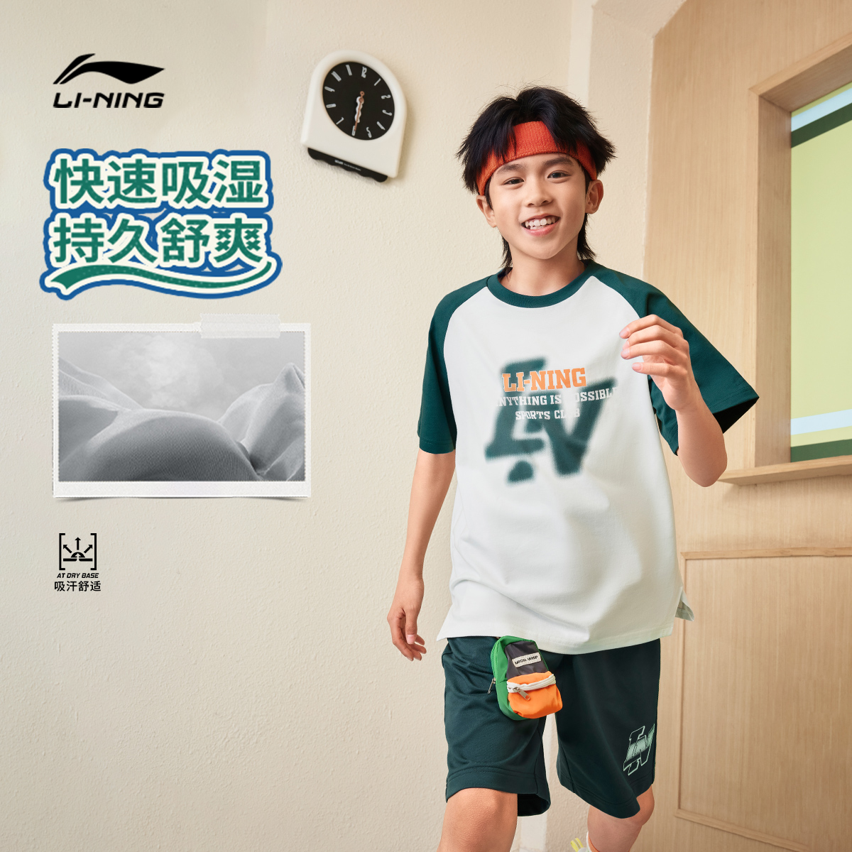 李宁儿童纯棉吸汗透气速干衣短袖T恤2025新款夏季男童装宽松衣服