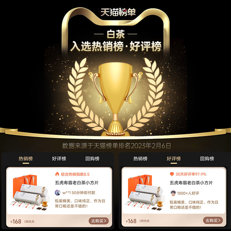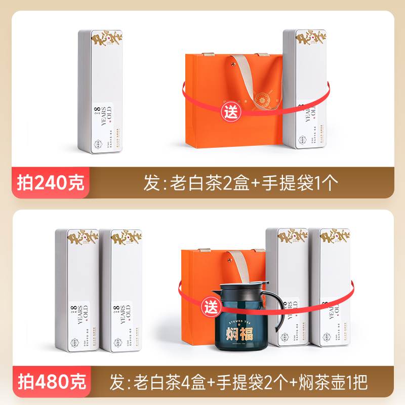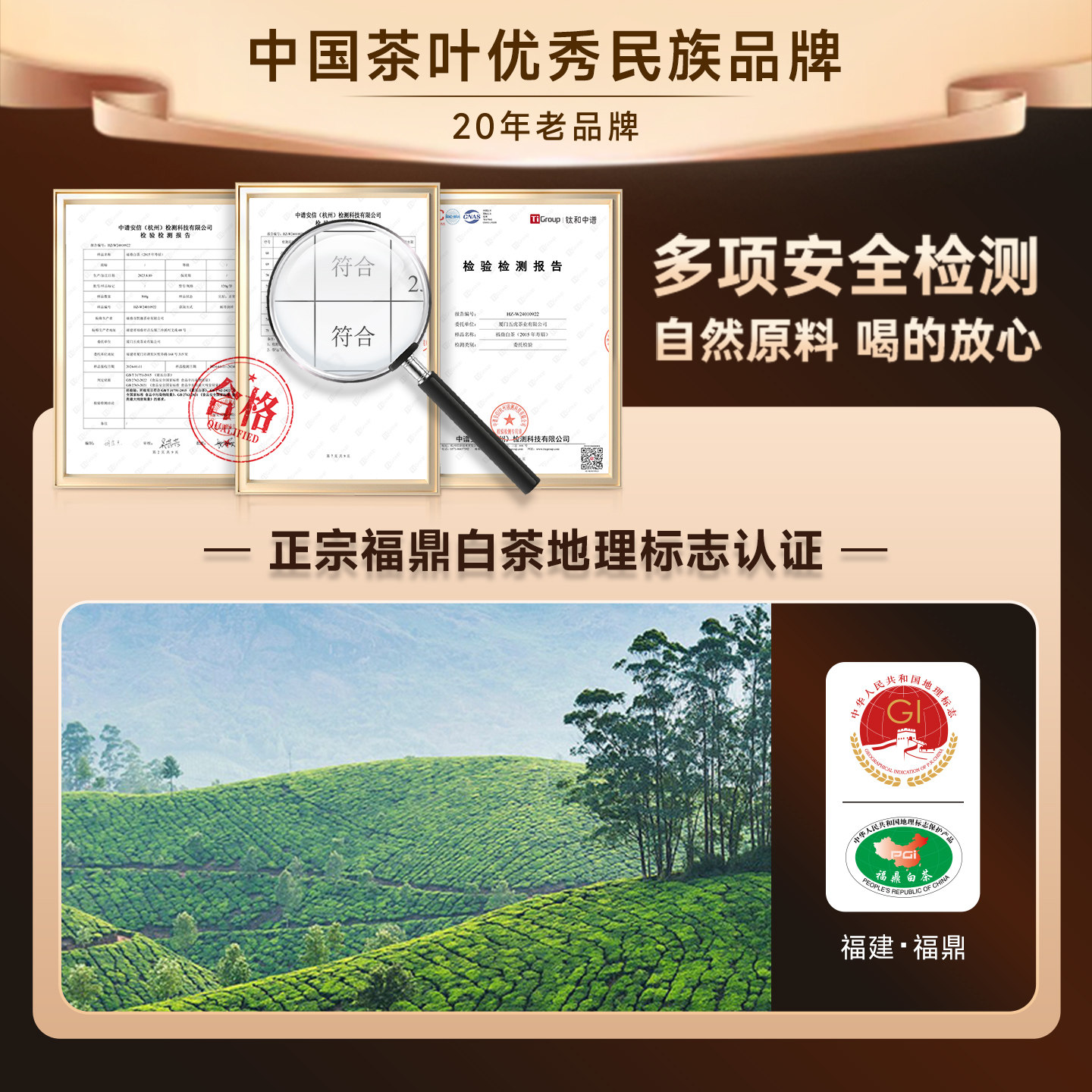 五虎福鼎白茶方片寿眉茶叶茶饼官方旗舰正品老白茶茶叶送礼礼盒装
