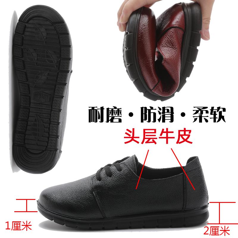 正品带女鞋秋季气真皮系软底舒适滑平底母亲节单鞋中老年妈妈透防