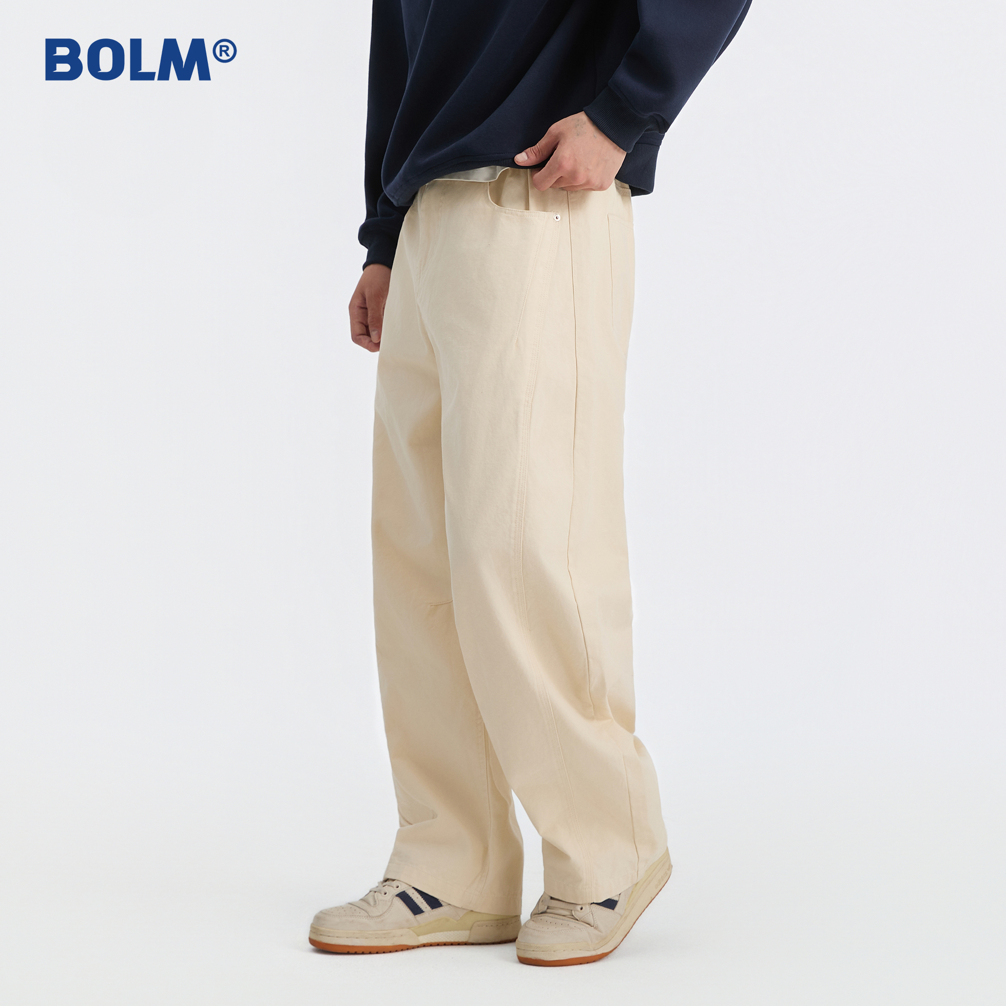 BOLM秋季新款纯棉弯刀休闲裤男宽松直筒卡其色长裤简约百搭裤子潮