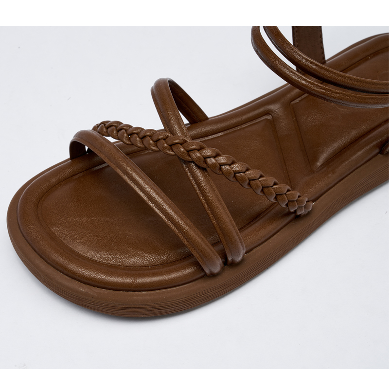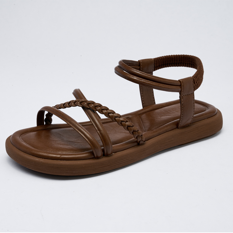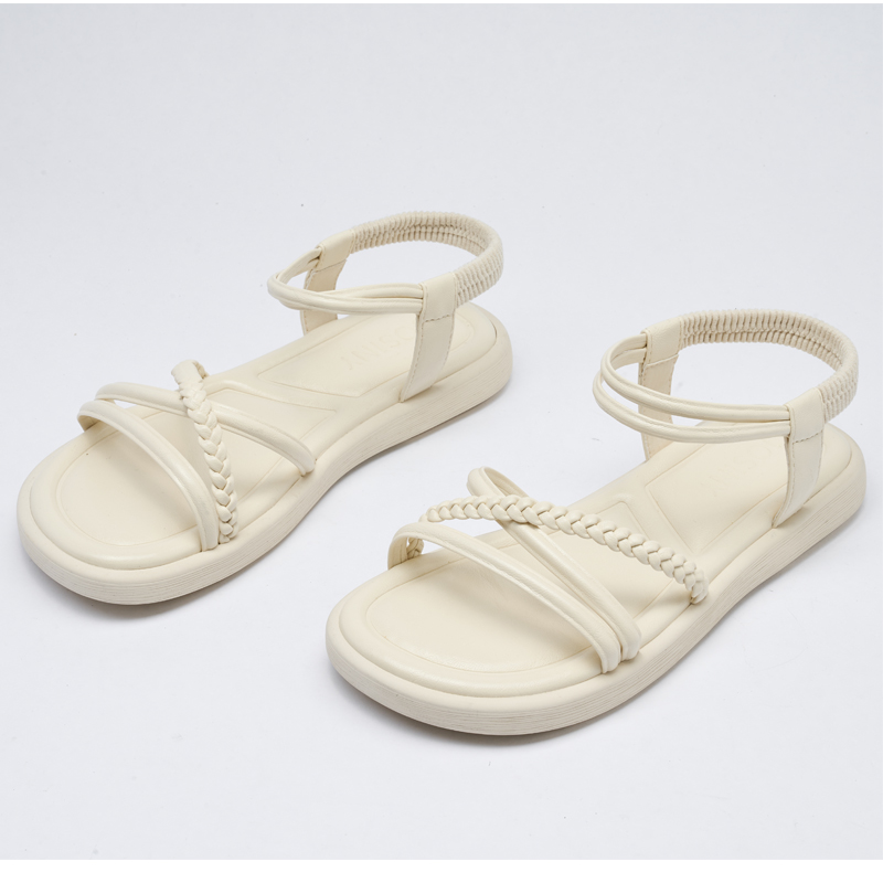 卓诗尼女凉鞋2025年新款女夏季舒适平底休闲凉鞋百搭软底交叉带潮