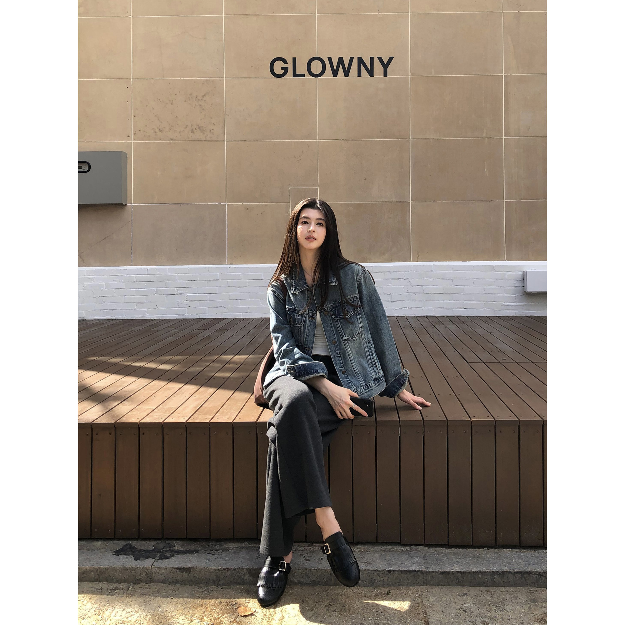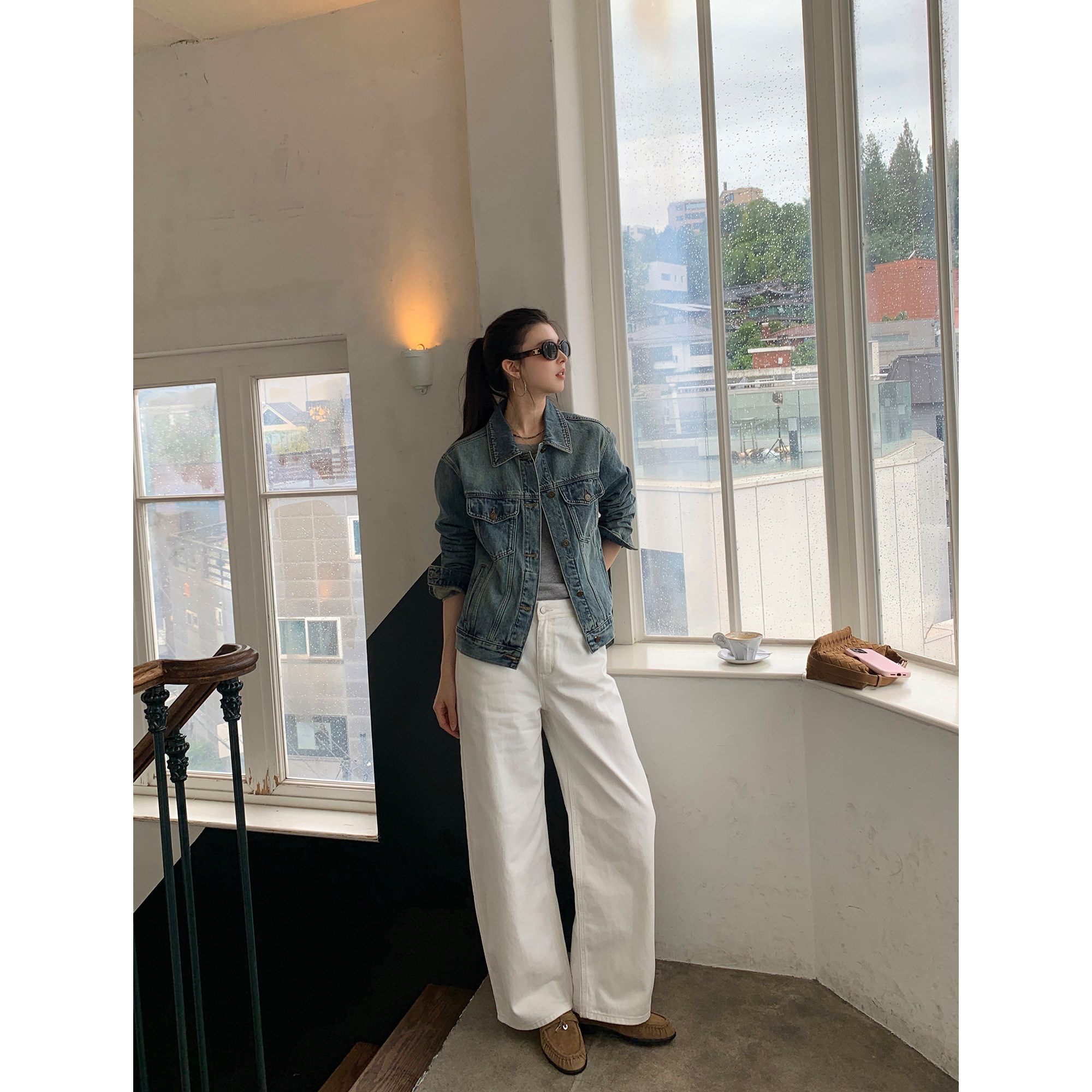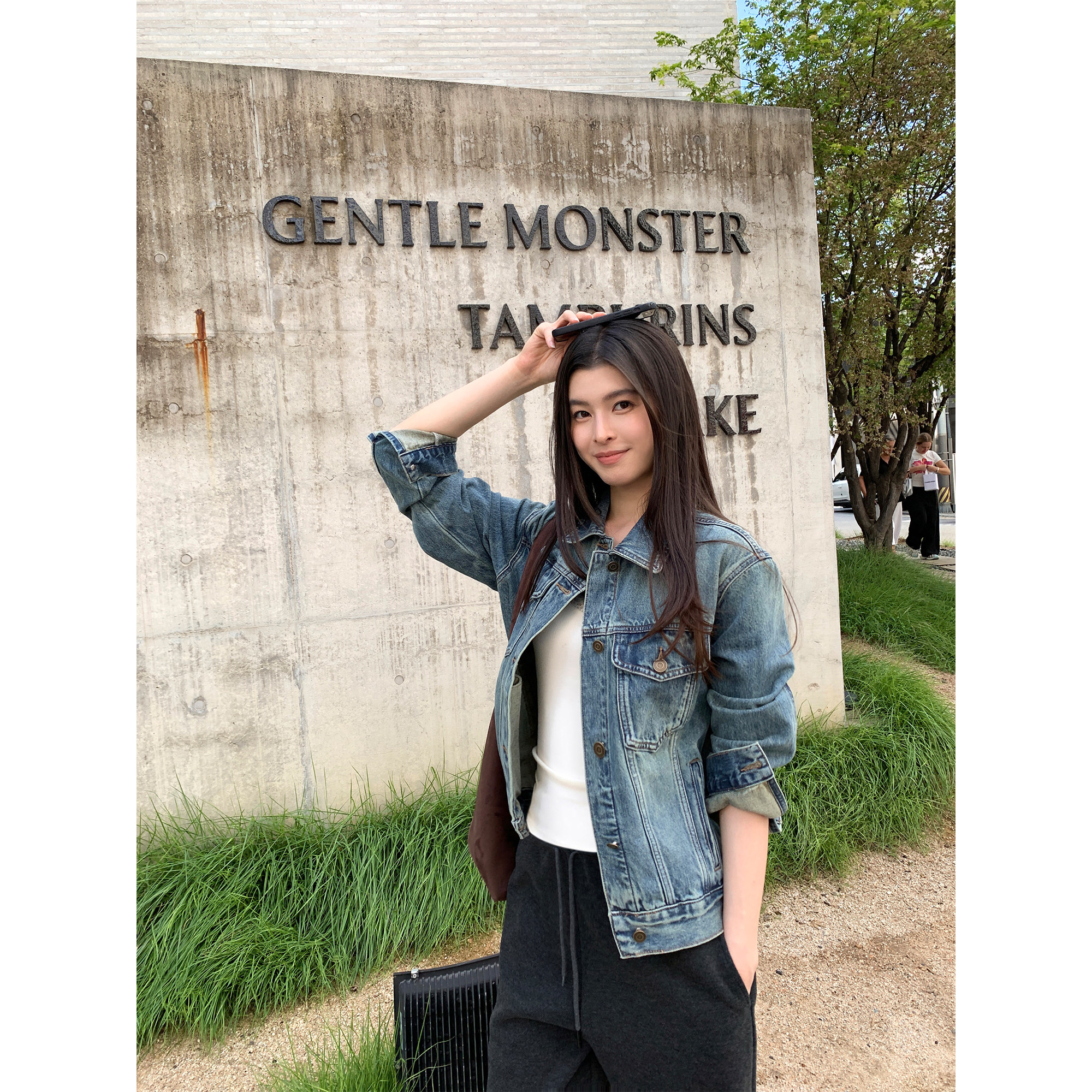 pusumede曼城旧事 复古做旧水洗牛仔外套女宽松显瘦翻领夹克上衣