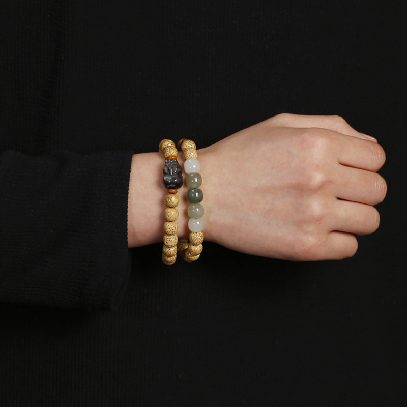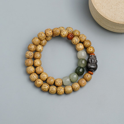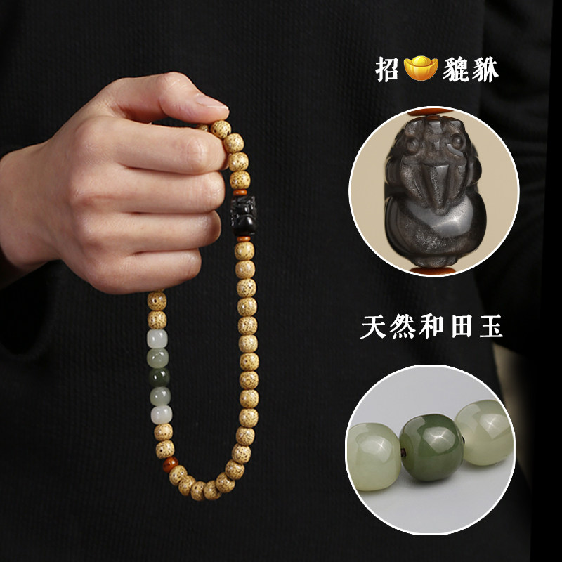陈籽星月菩提子手串手持念佛珠黑曜石貔貅和田玉文玩天然配饰手链