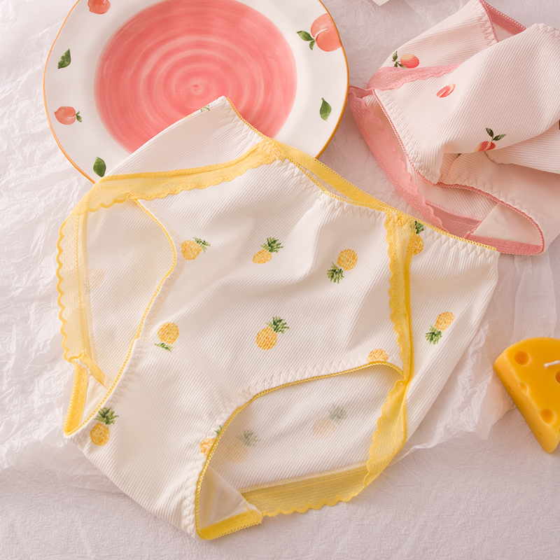 高腰无痕蕾丝边甜美少女胖MM