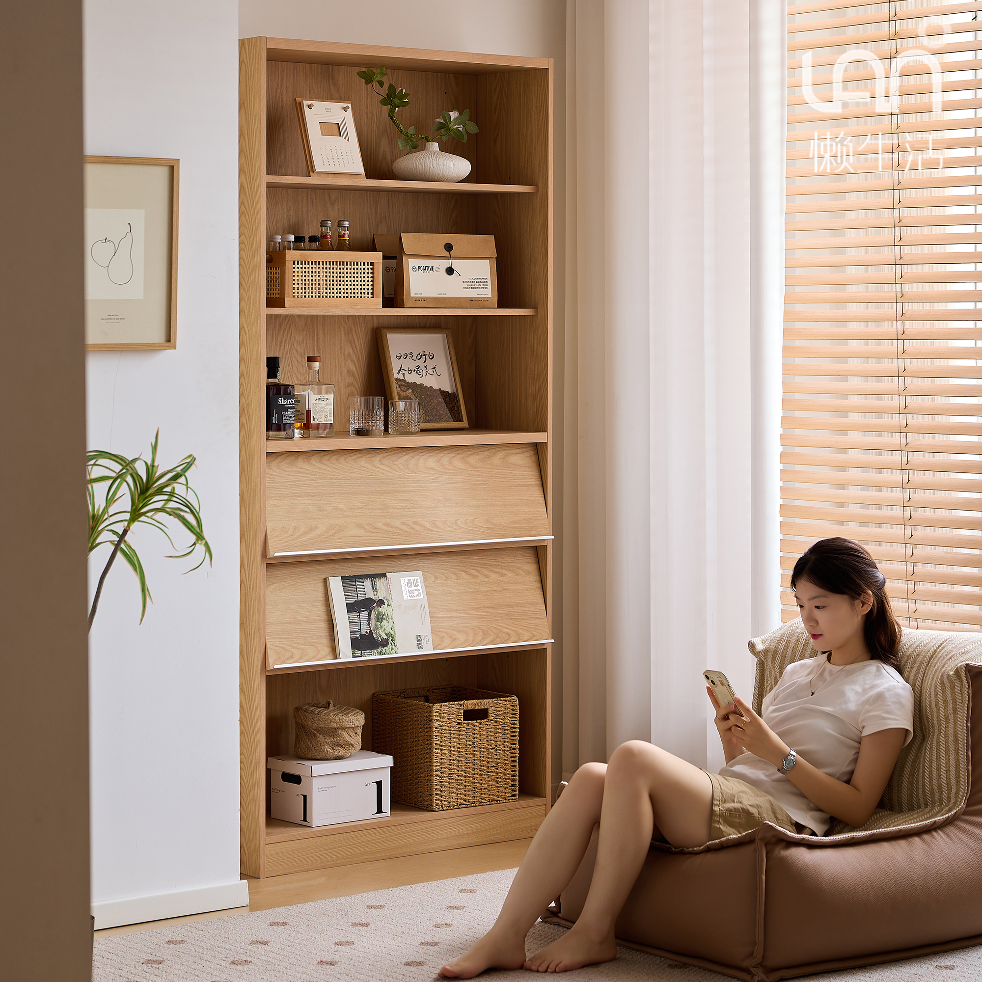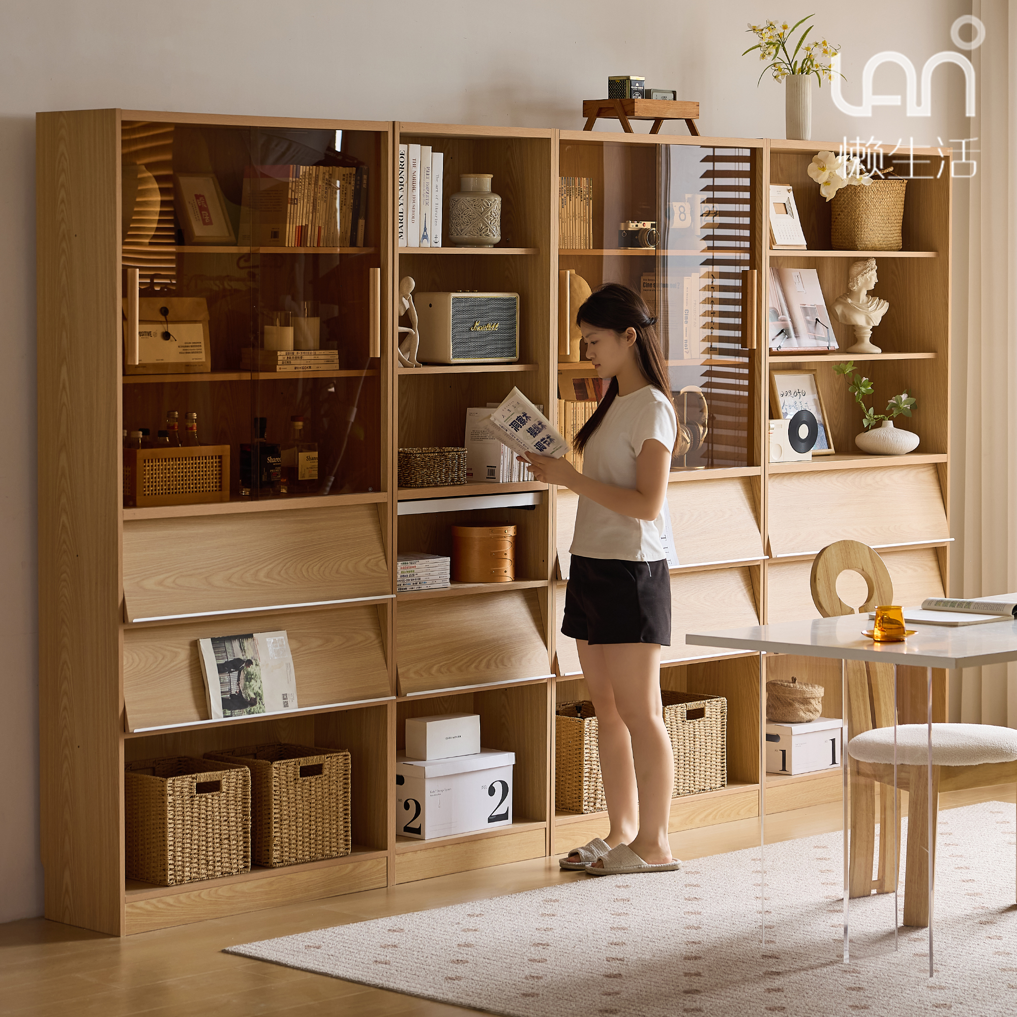 懒生活书柜实木展示柜客厅立柜日式自由组合柜书房带玻璃门储物柜