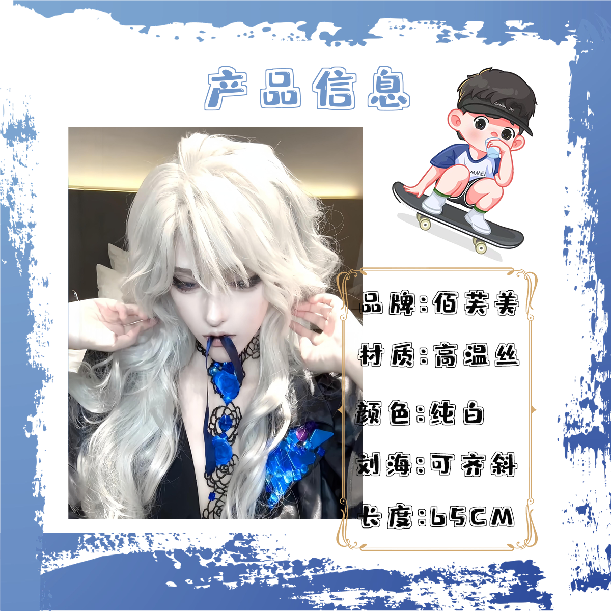 约瑟夫cos假发银白长卷发全头套