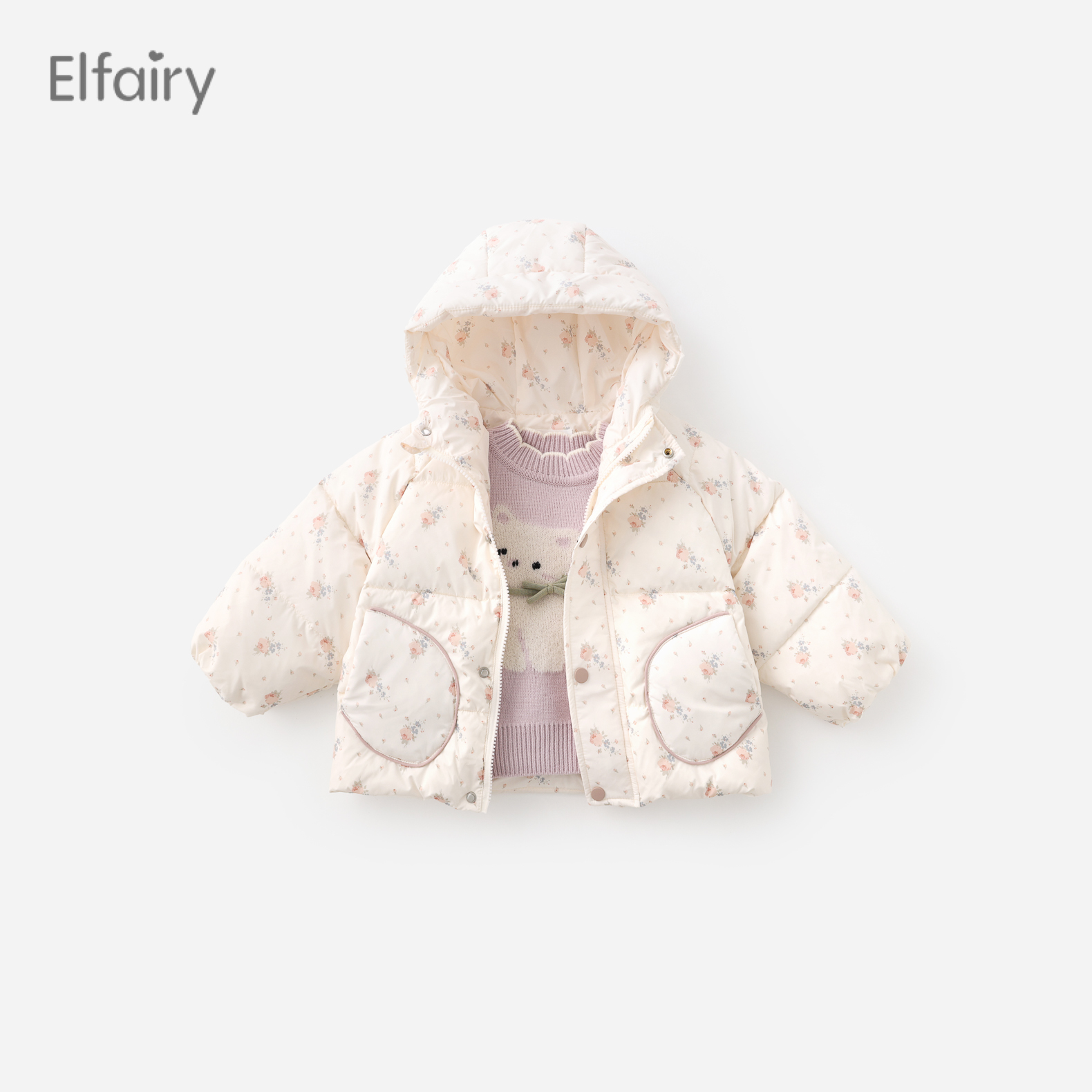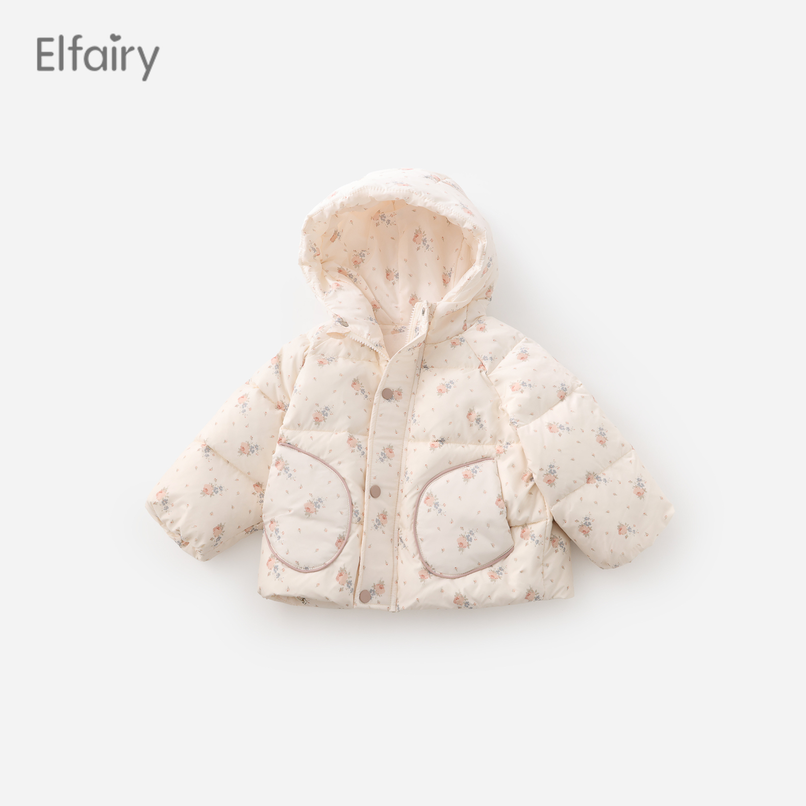 Elfairy女童羽绒服冬季儿童白鸭绒棉服小童宝宝加厚连帽棉衣童装