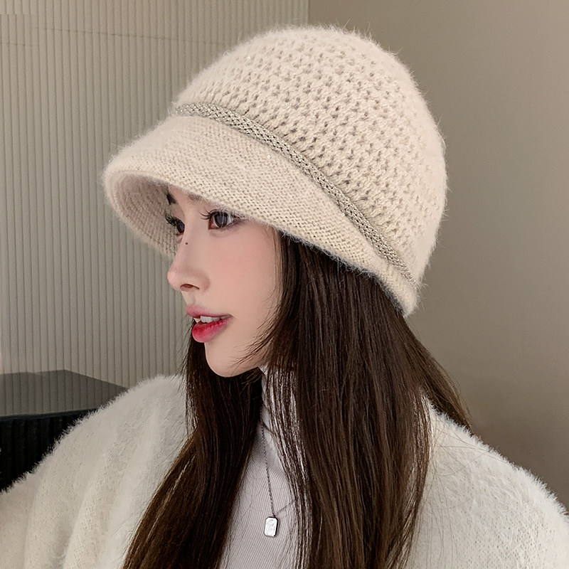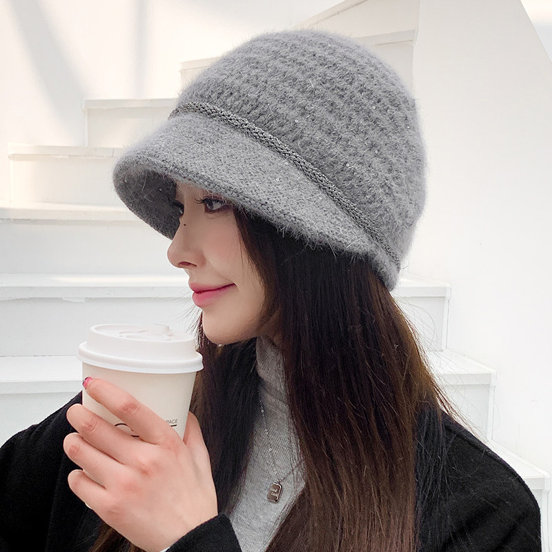 兔毛针织帽子女秋冬天时尚百搭显脸小毛线鸭舌贝雷帽英伦复古保暖