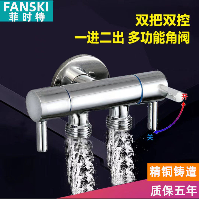 菲时特双控一进二出双用分水器马桶洗衣机铜双开关双出水一体角阀