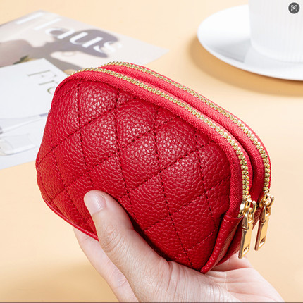 菱格拉链零钱包女款迷你小钱包卡包收纳包口红钥匙包妈妈手拿包