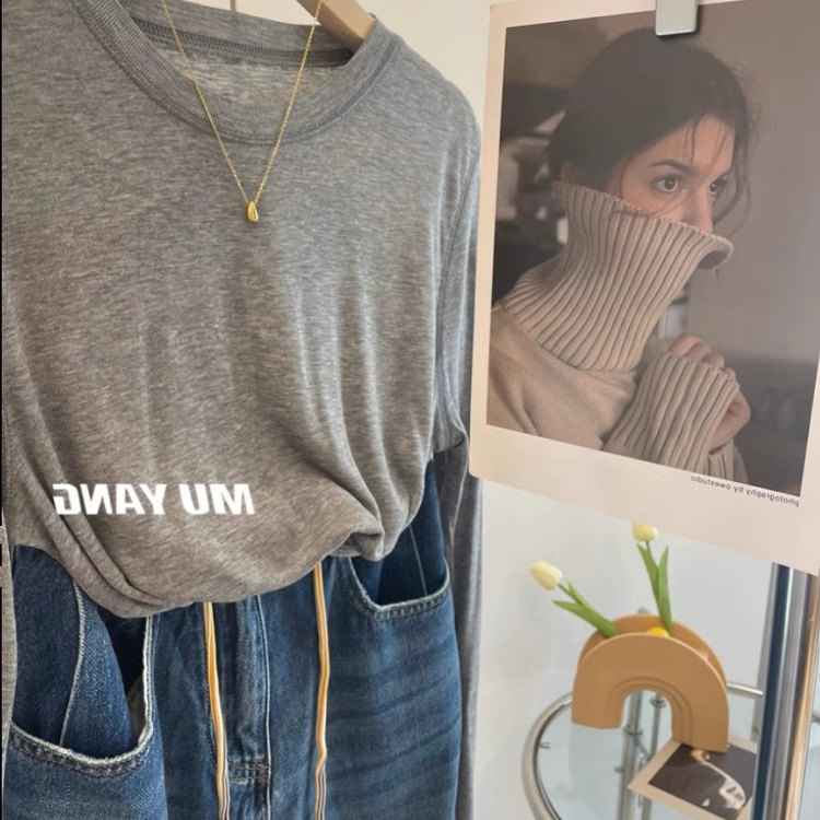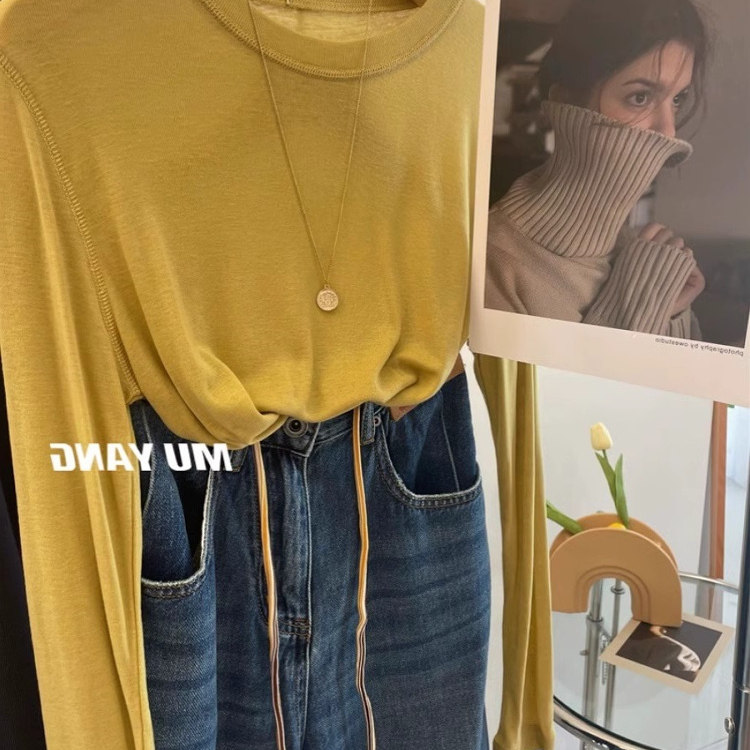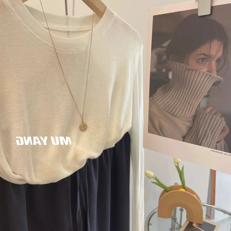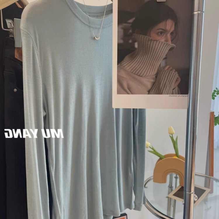 天丝羊毛长袖面膜T恤女春夏薄款软糯亲肤舒适白色内搭打底衫上衣