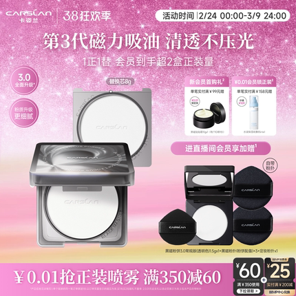 【38开门红】3.0卡姿兰黑磁粉饼散粉8g+8g替换芯粉饼定妆控油持久