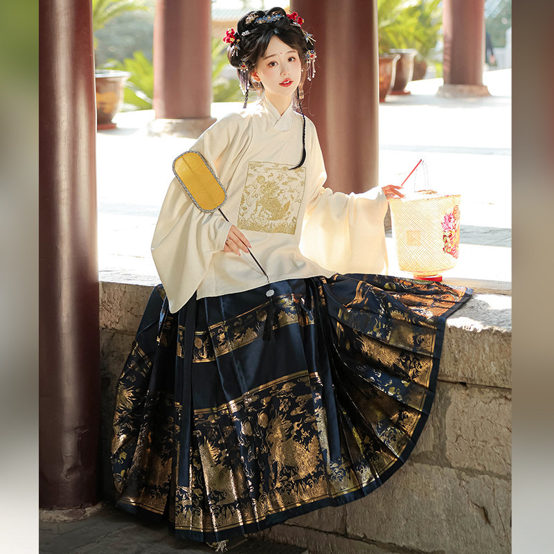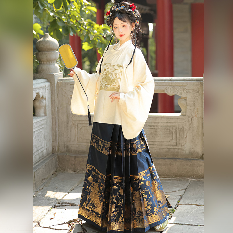 曹州府原创麒麟汉服女明制圆领大襟绣花琵琶袖短袄织金马面秋冬款