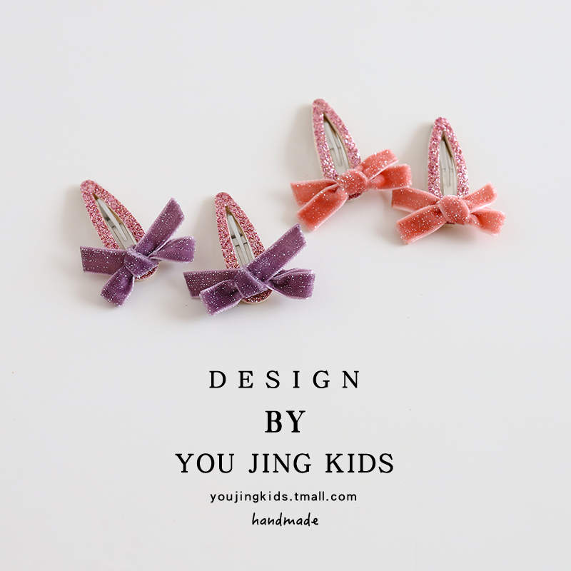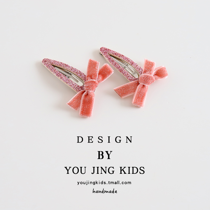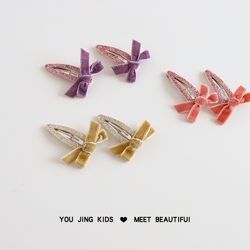 儿童闪粉发夹丝绒蝴蝶结女童发卡BB夹女孩洋气刘海夹边夹可爱头饰