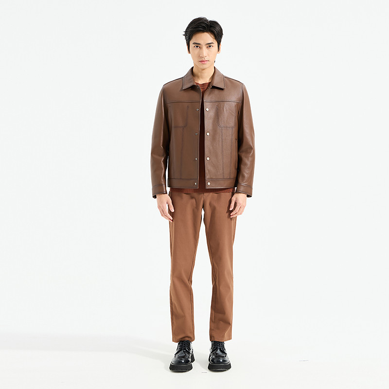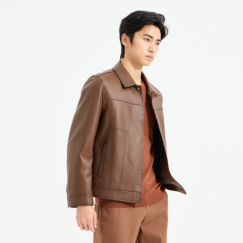 【内里充绒】利郎奥莱真皮皮衣2025冬季新款时尚百搭男士轻奢外套