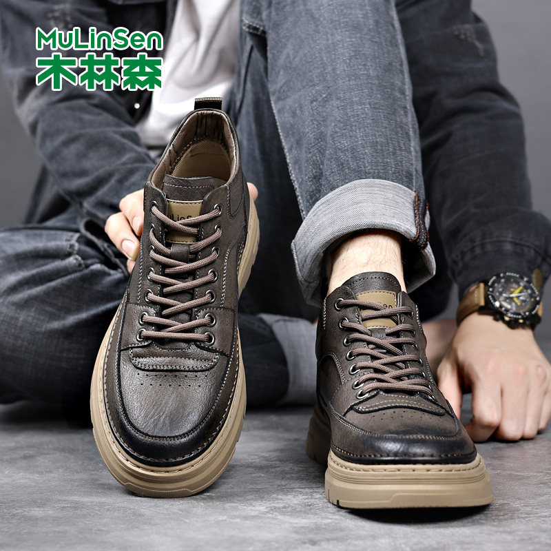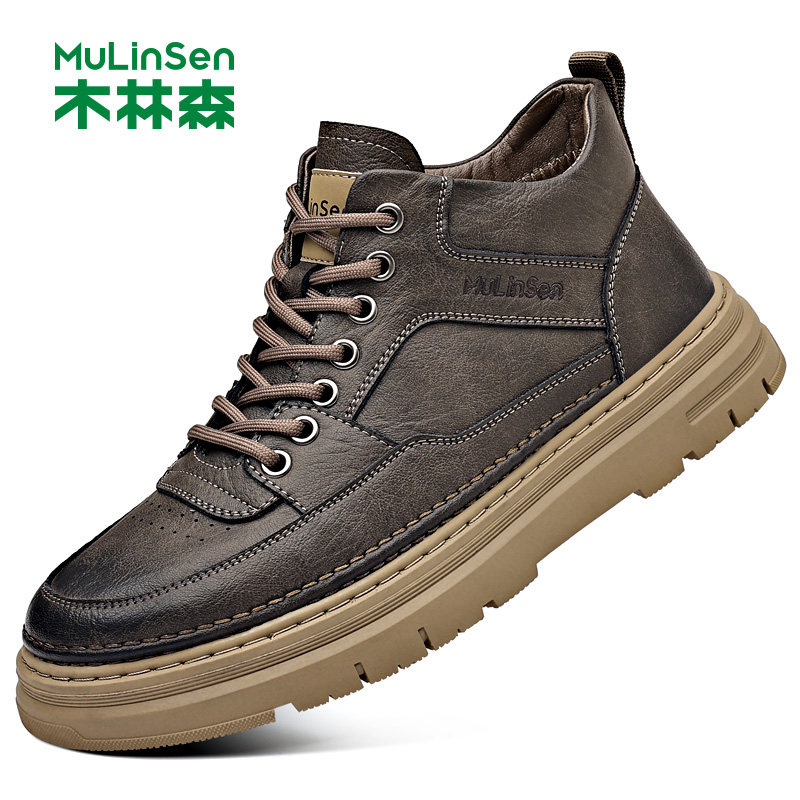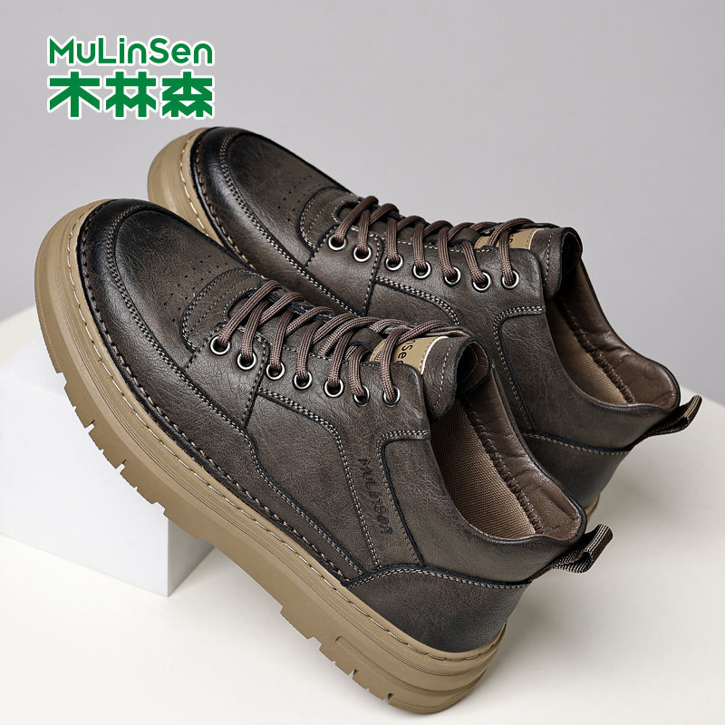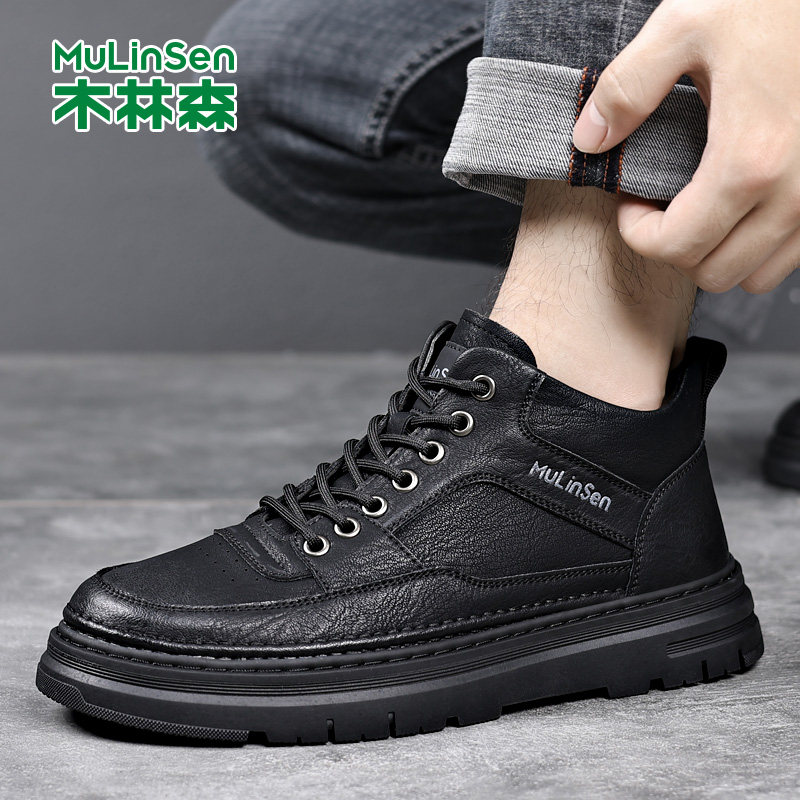 木林森男鞋2025冬季新款时尚潮流百搭软底中帮真皮休闲男士皮鞋男