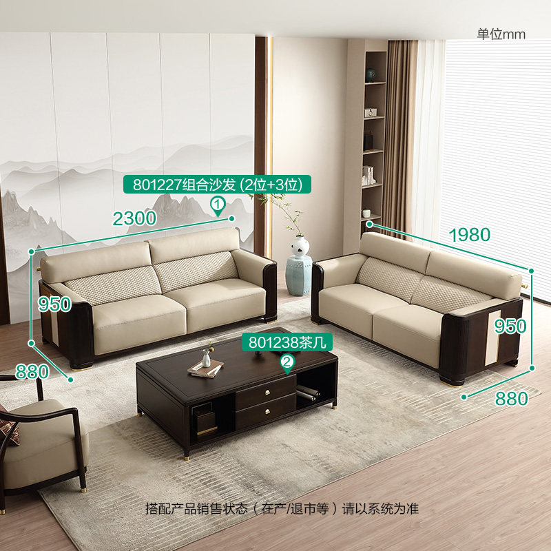 全友家居 门店同款 京鸿系列 东方风 801227 真牛皮皮艺沙发2+3