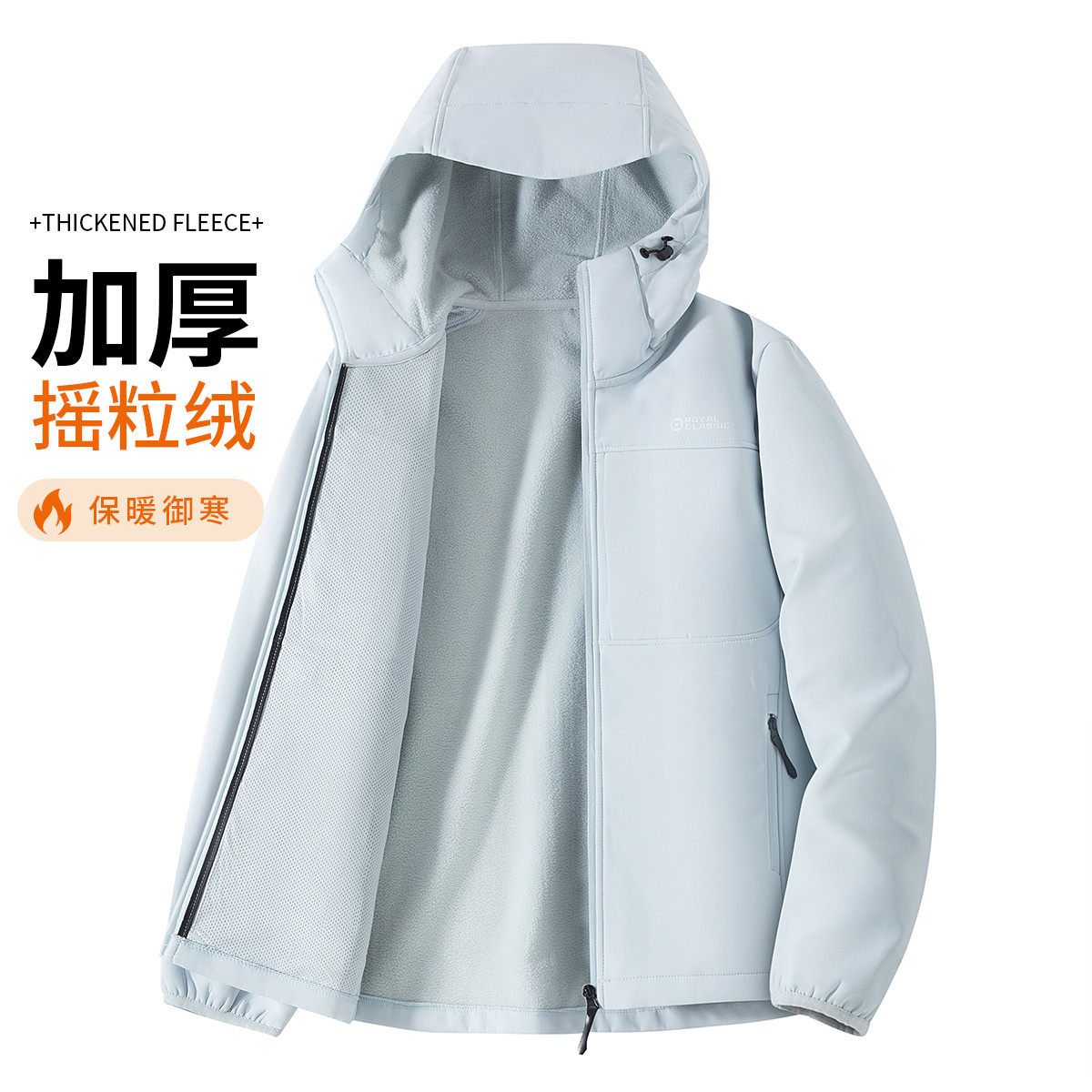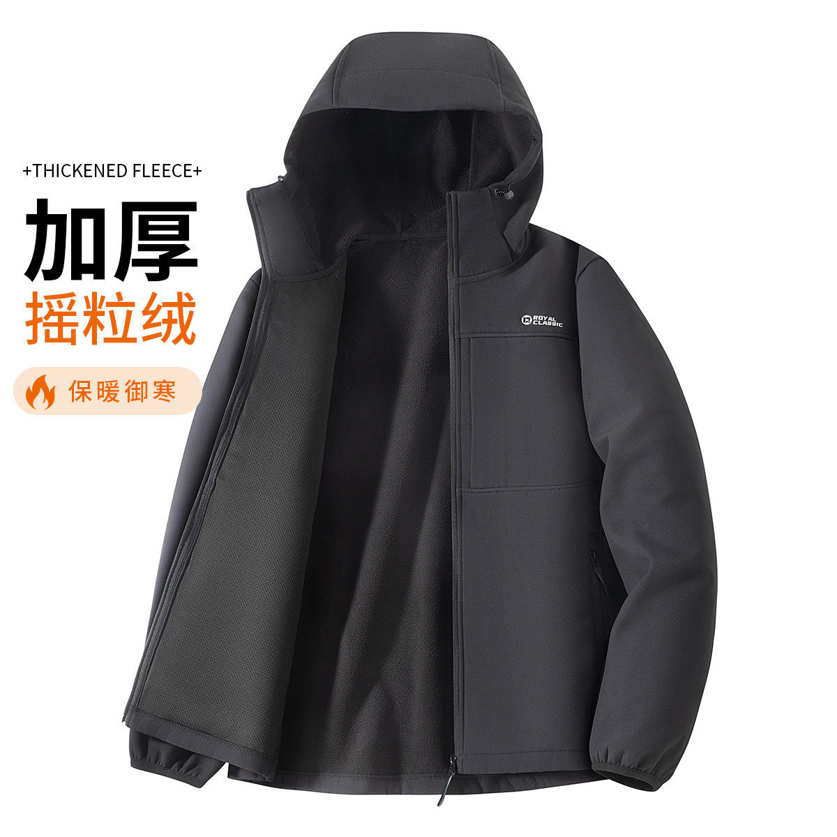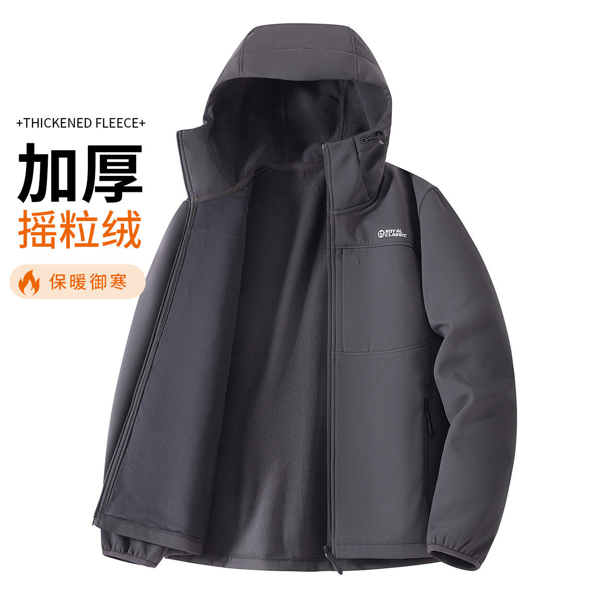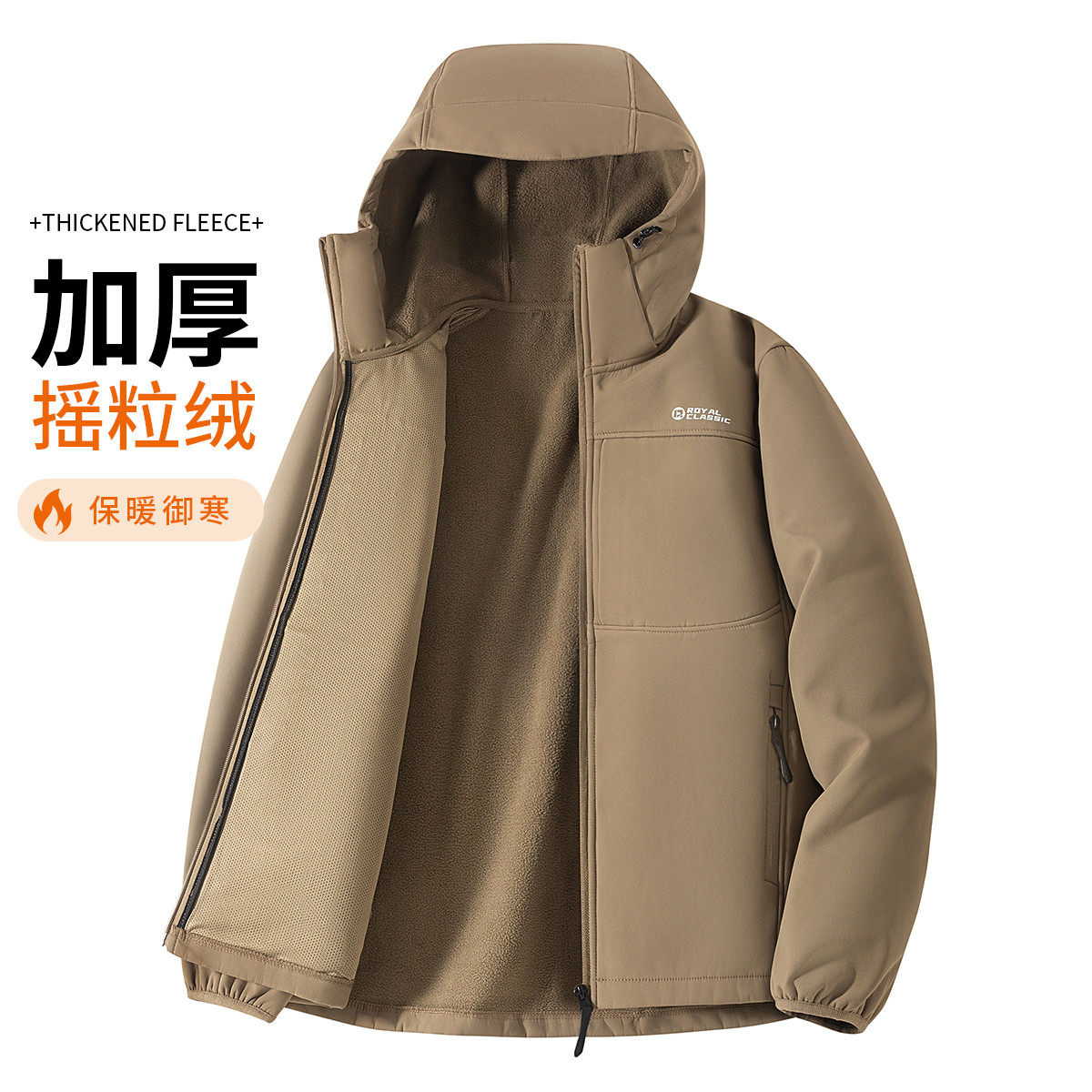 罗蒙秋冬摇粒绒内里加绒连帽机能风夹克拉链口袋加厚风衣外套男士