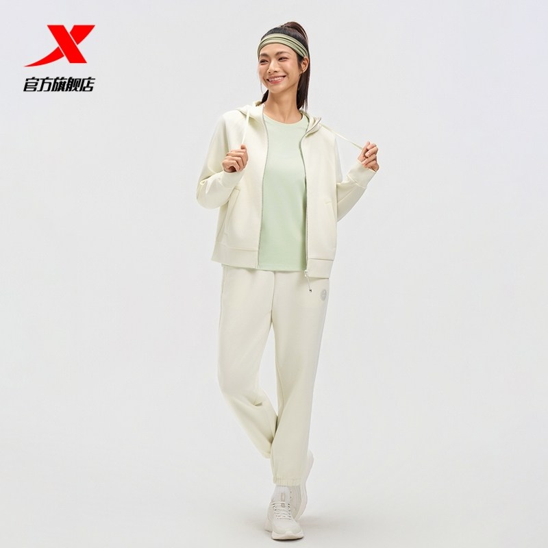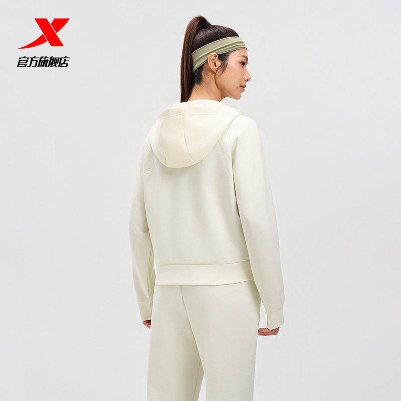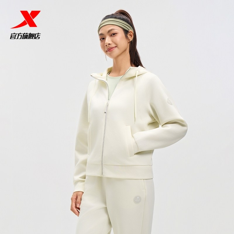 特步外套女2025年秋冬潮流百搭针织防风连帽运动上衣975328940121
