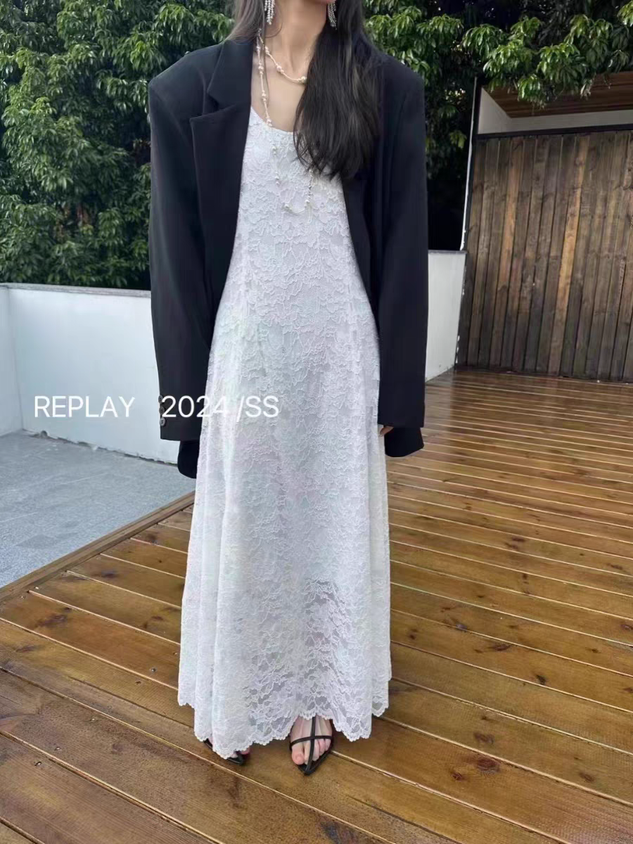 大码女装2025夏气质蕾丝吊带收腰显瘦高级感度假风聚会无袖连衣裙