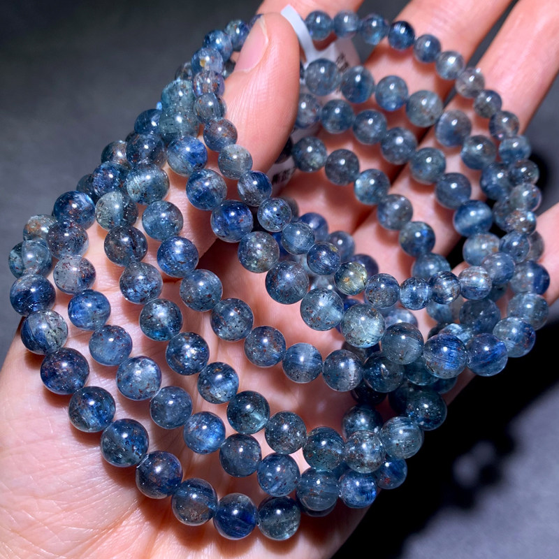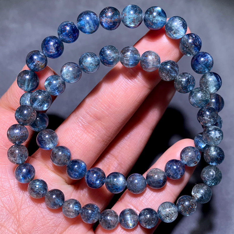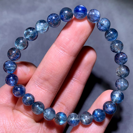 天然草莓蓝晶石手链单圈共生矿物蓝绿色水晶手串情侣款饰品礼物女