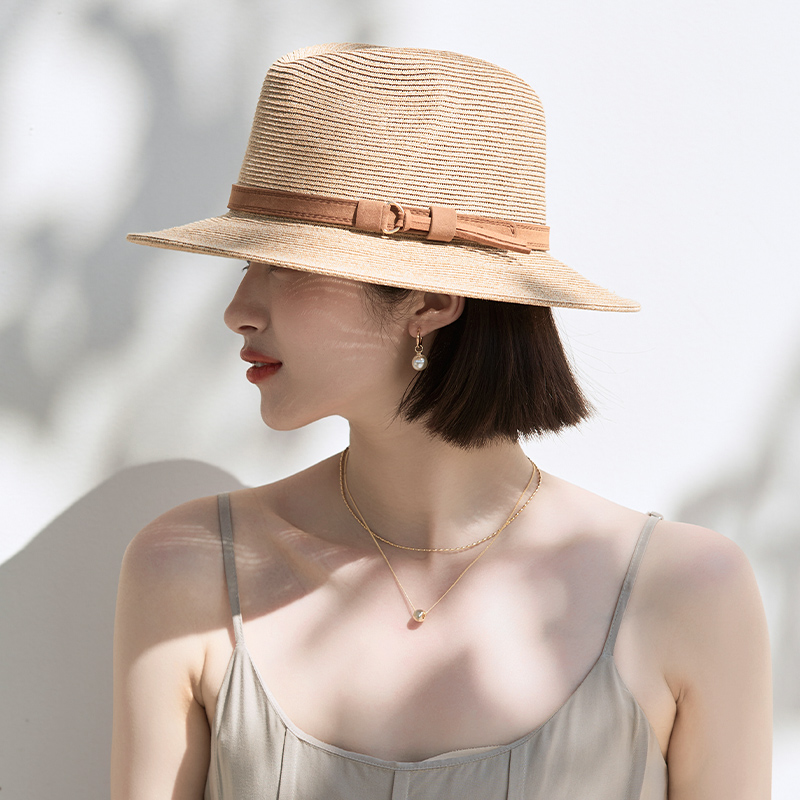 巴拿马草帽女款夏季出游海边百搭防晒太阳帽子气质时尚礼帽爵士帽