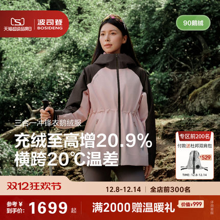 叠变鹅绒波司登25新款户外防水透汽登山收腰三合一冲锋衣羽绒服女
