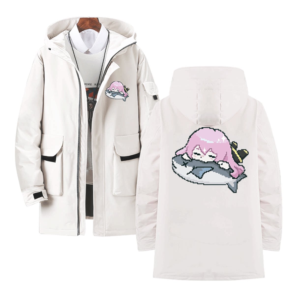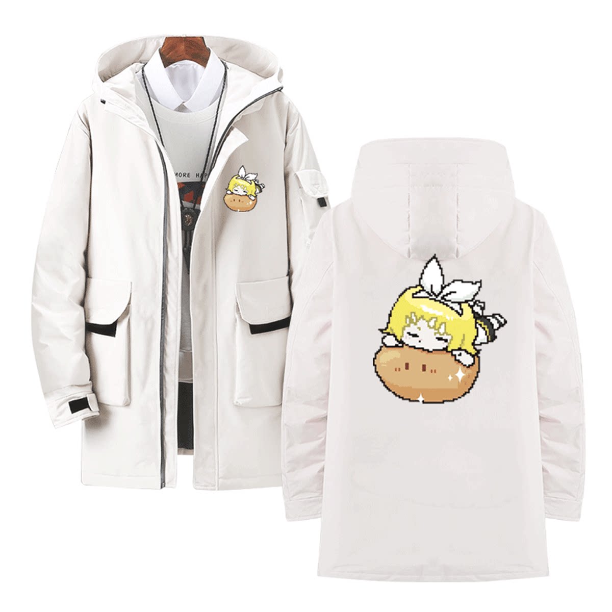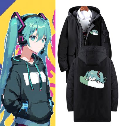 初音未来MIKU镜音双子巡音像素风卡通人物周边男定制中长款羽绒服