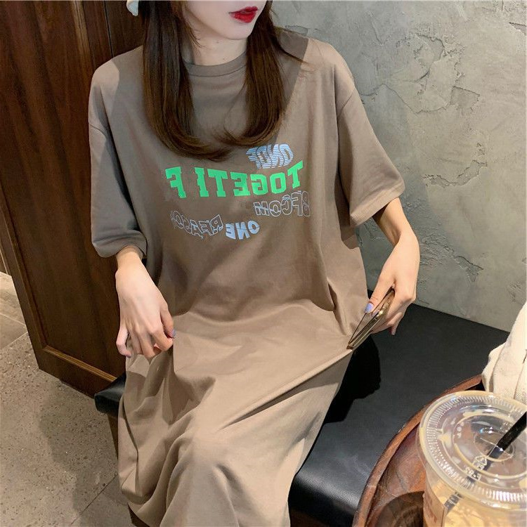 夏季款韩版时尚长款过膝遮臀短袖休闲长裙胖妹妹300斤大码女装裙