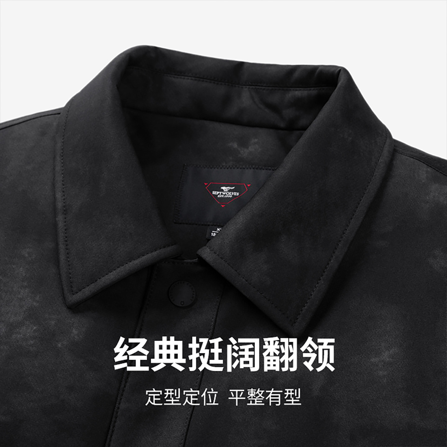七匹狼夹棉夹克男秋冬季男装轻商务提花加厚外套男士翻领茄克衫潮