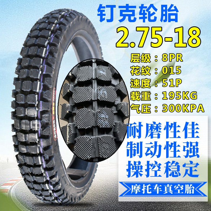 钉克摩托车真空胎2.50/2.75/3.00/3.25/3.50-16/17/18寸防滑轮胎
