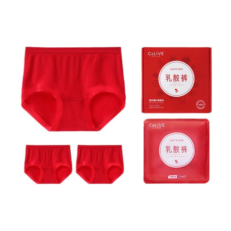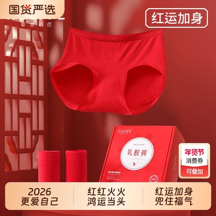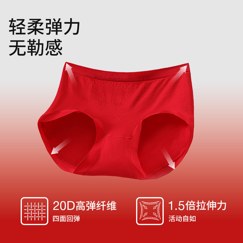 草本初色本命年红色内裤女纯棉无痕马年结婚礼盒三角裤抗菌简约