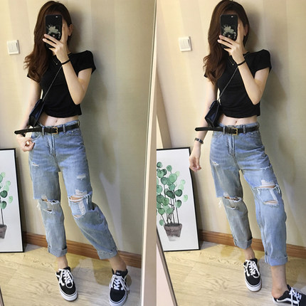 破洞牛仔裤女破洞裤宽松夏2024新款老爹裤夏季网红裤子九分乞丐裤