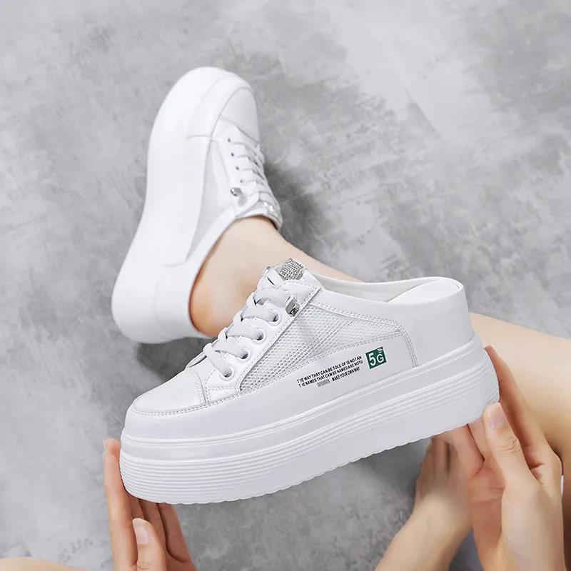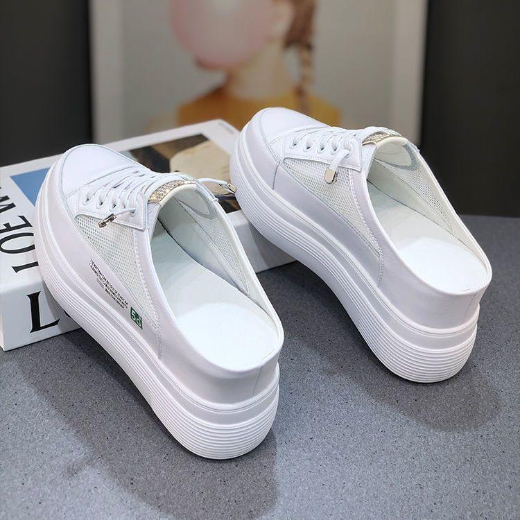 2025夏内增高小白鞋懒人半拖百搭女半托学生网面无后跟一脚蹬