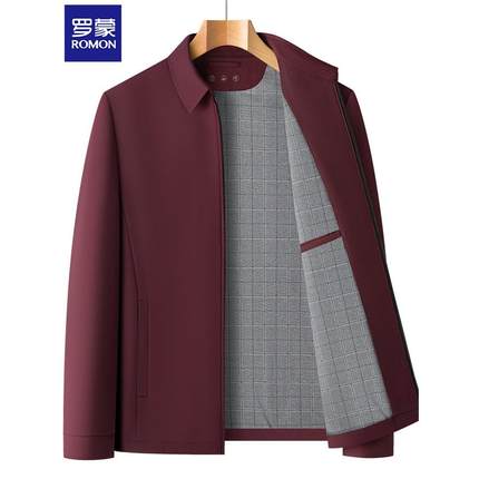 罗蒙2025新款酒红色翻领行政夹克衫宽松中老年爸爸秋装上衣外套男