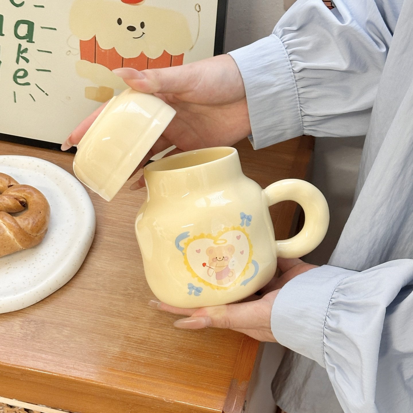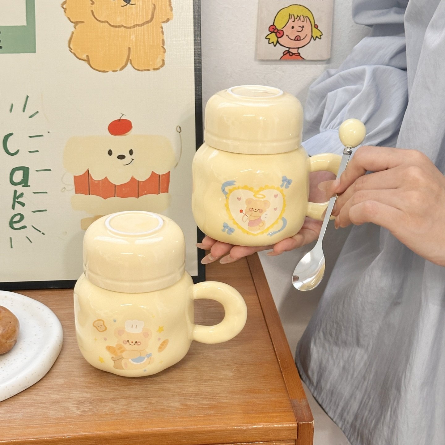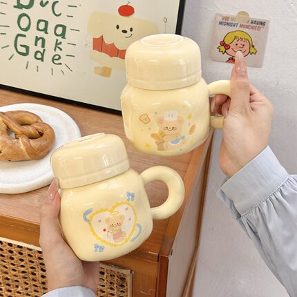 奶fufu黄油小熊马克杯带盖大容量可爱陶瓷水杯情侣生日礼物伴手礼