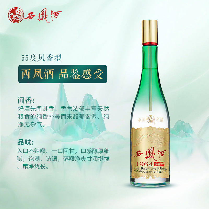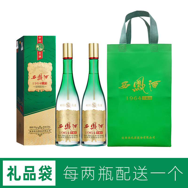 西凤酒55度 1964珍藏版500ml*2瓶纯粮食白酒礼盒口粮送礼自饮