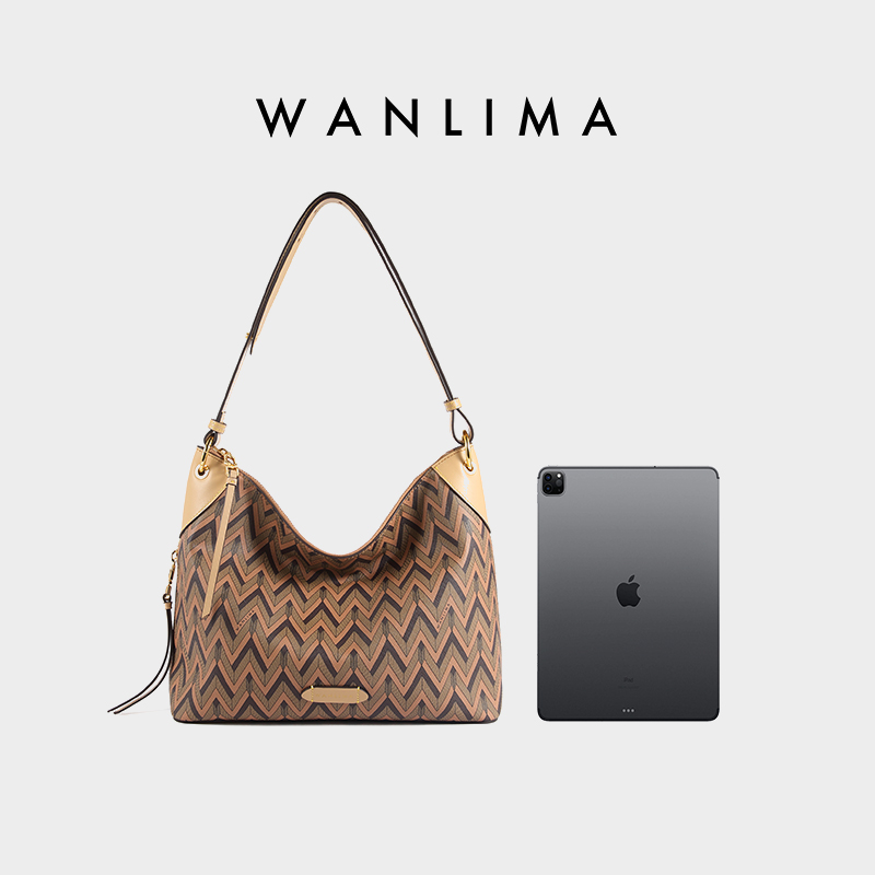 万里马经典老花单肩hobo包包女大容量腋下托特包通勤水桶包