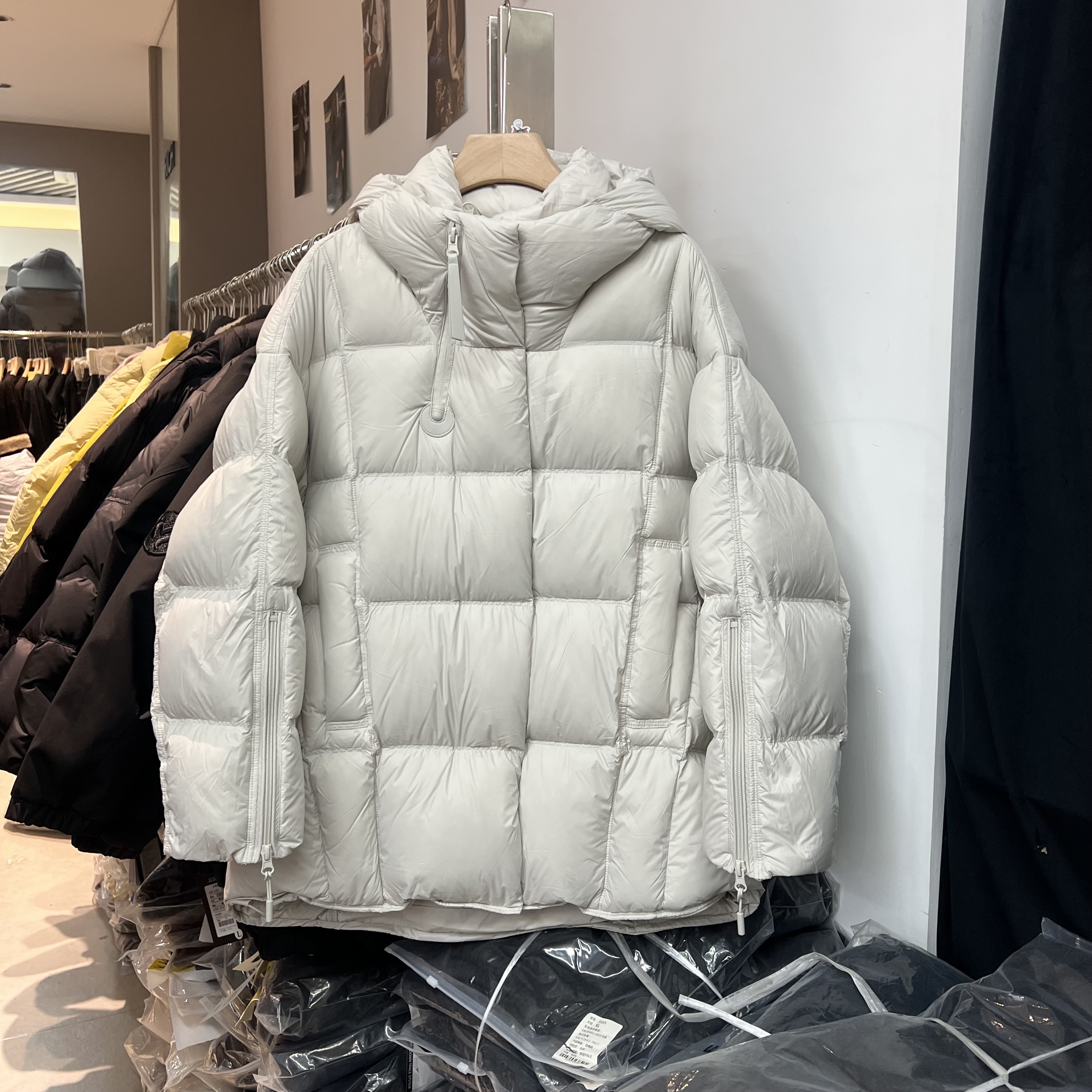 7855泡芙连帽中长款羽绒服女冬季新款加厚保暖面包服90白鸭绒外套